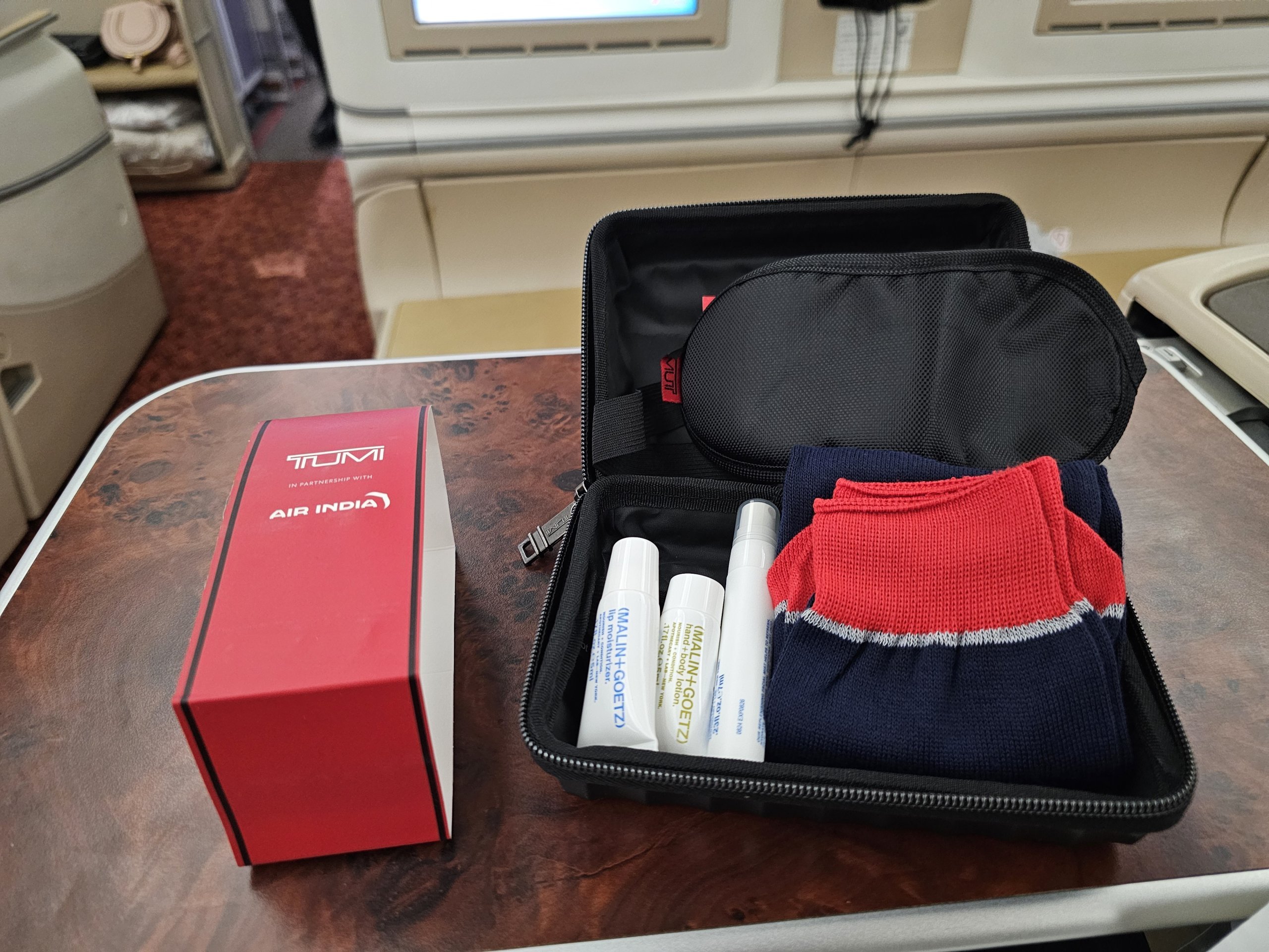 Hvert sete inkluderer den tradisjonelle Amenity kit, en liten eske med toalettsaker, men også andre nyttige personlige ting.