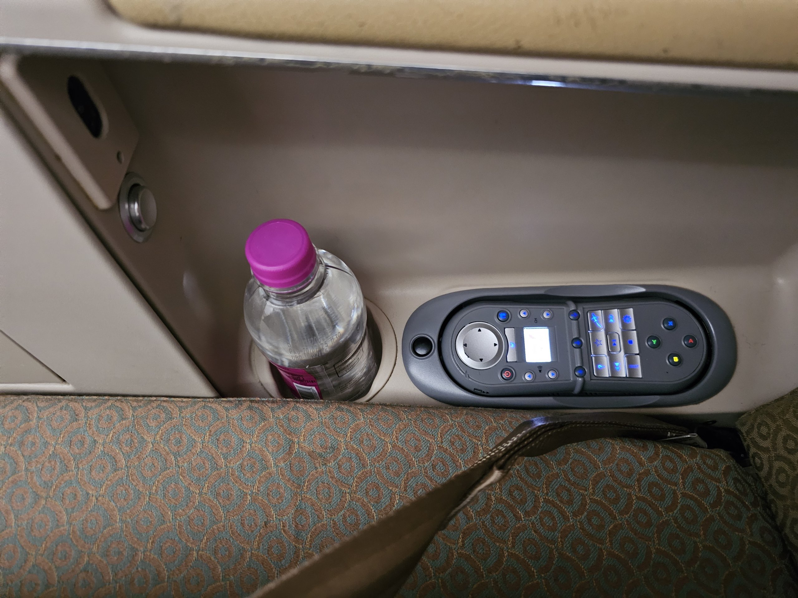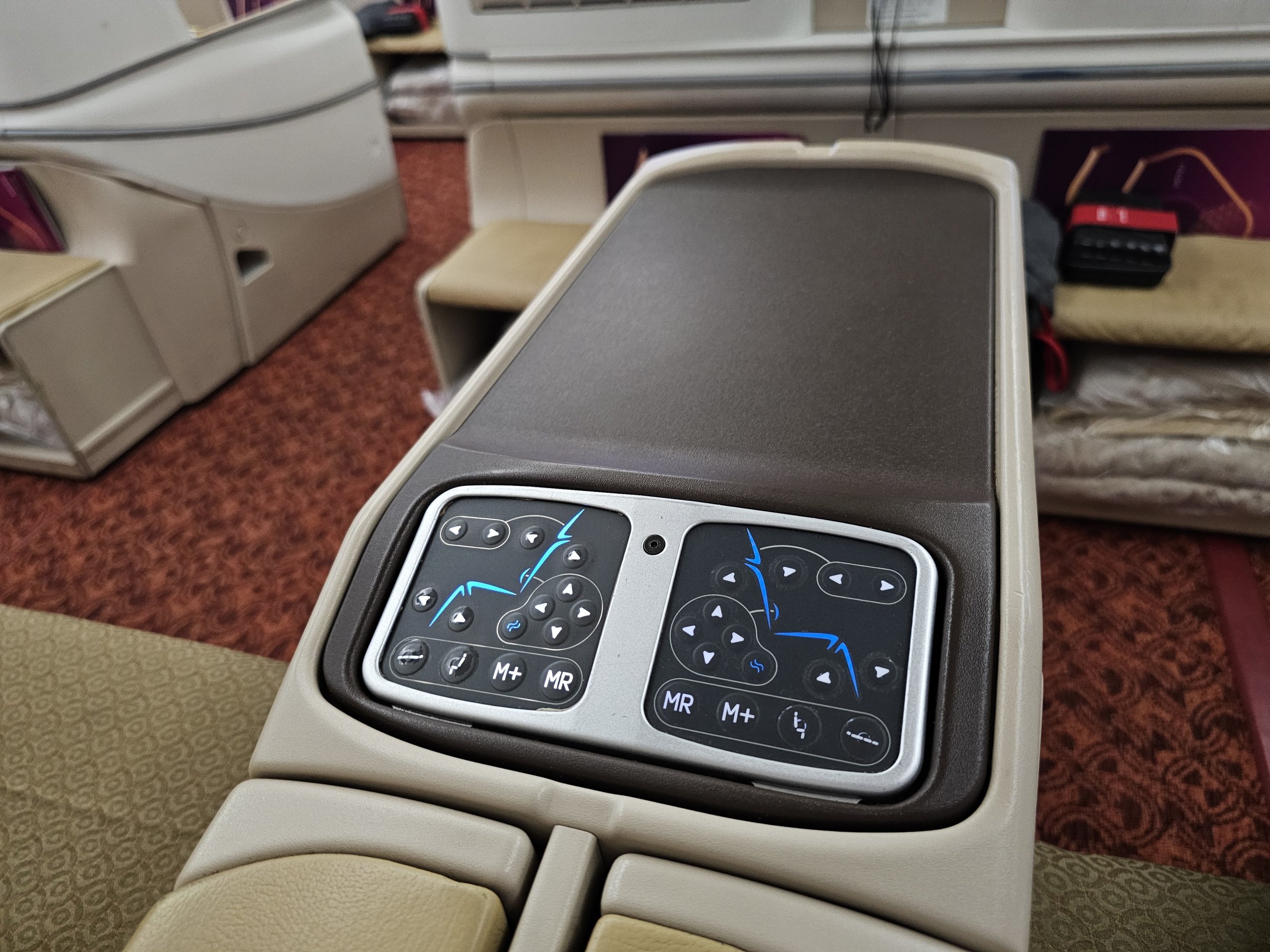 Betjeningselementene er litt utdaterte, men veldig enkle, og du kan enkelt justere setet til horisontal stilling selv uten hjelp fra mannskapet ved å trykke på en knapp.