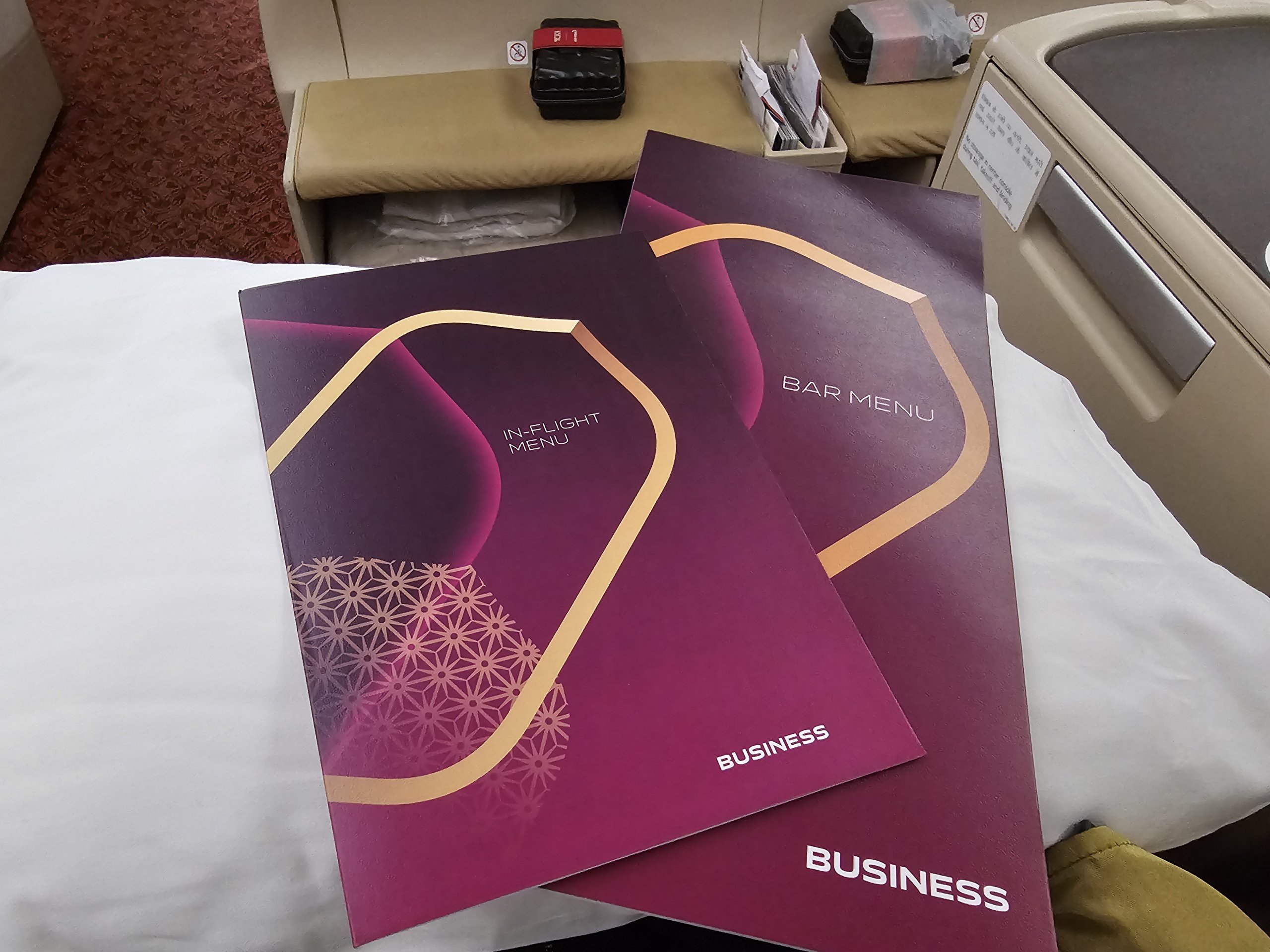 Før avgang går besetningen vanligvis rundt til alle passasjerene og skriver ned hvilket måltid de har valgt fra menyen.