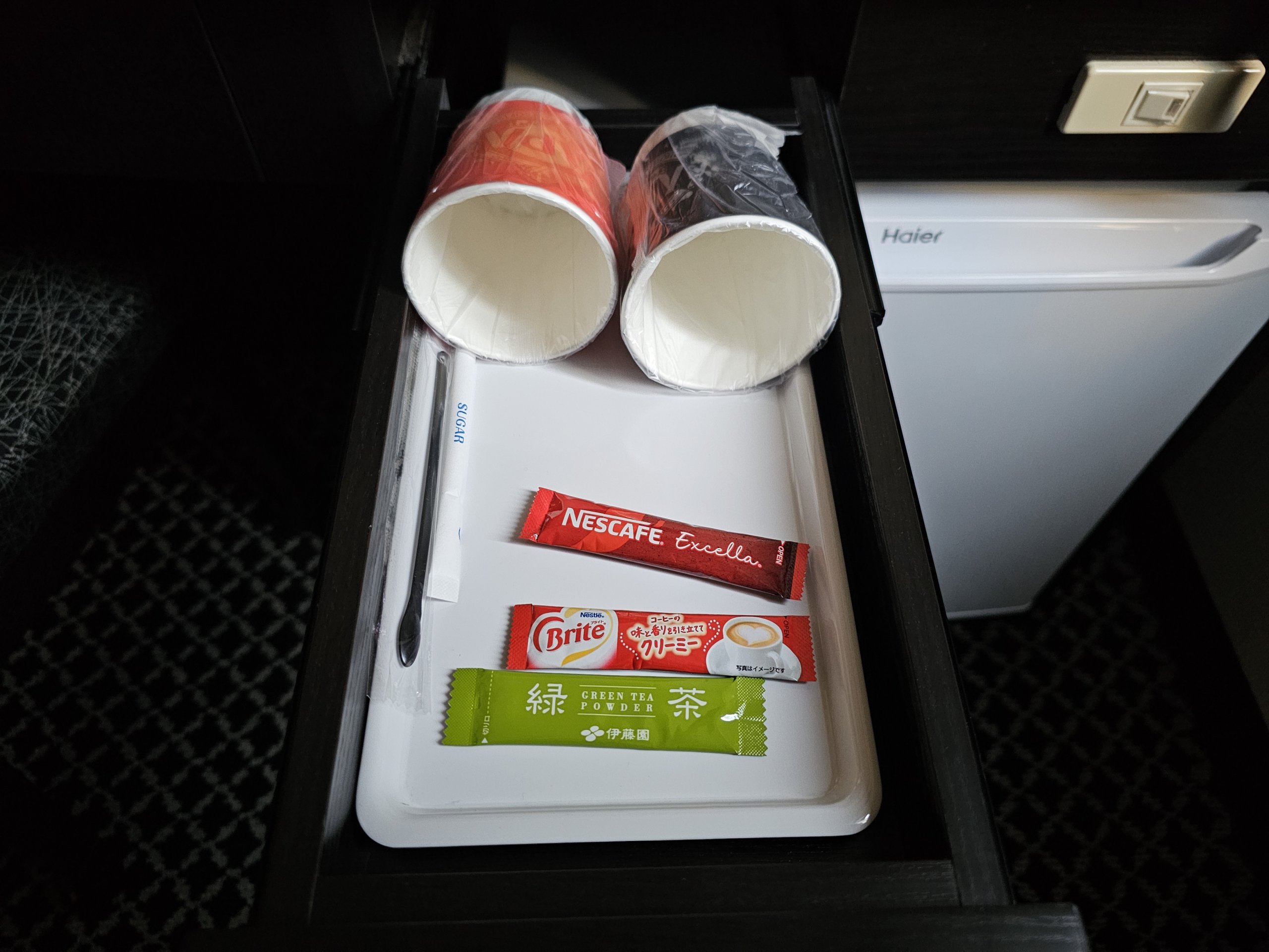 Det finnes også en automat for kjølte drikkevarer i resepsjonen (kun kontanter), men det er mer sannsynlig at du bruker Lawson minimarkedet rett overfor hotellet, som er åpent døgnet rundt og også kan betales med kort.