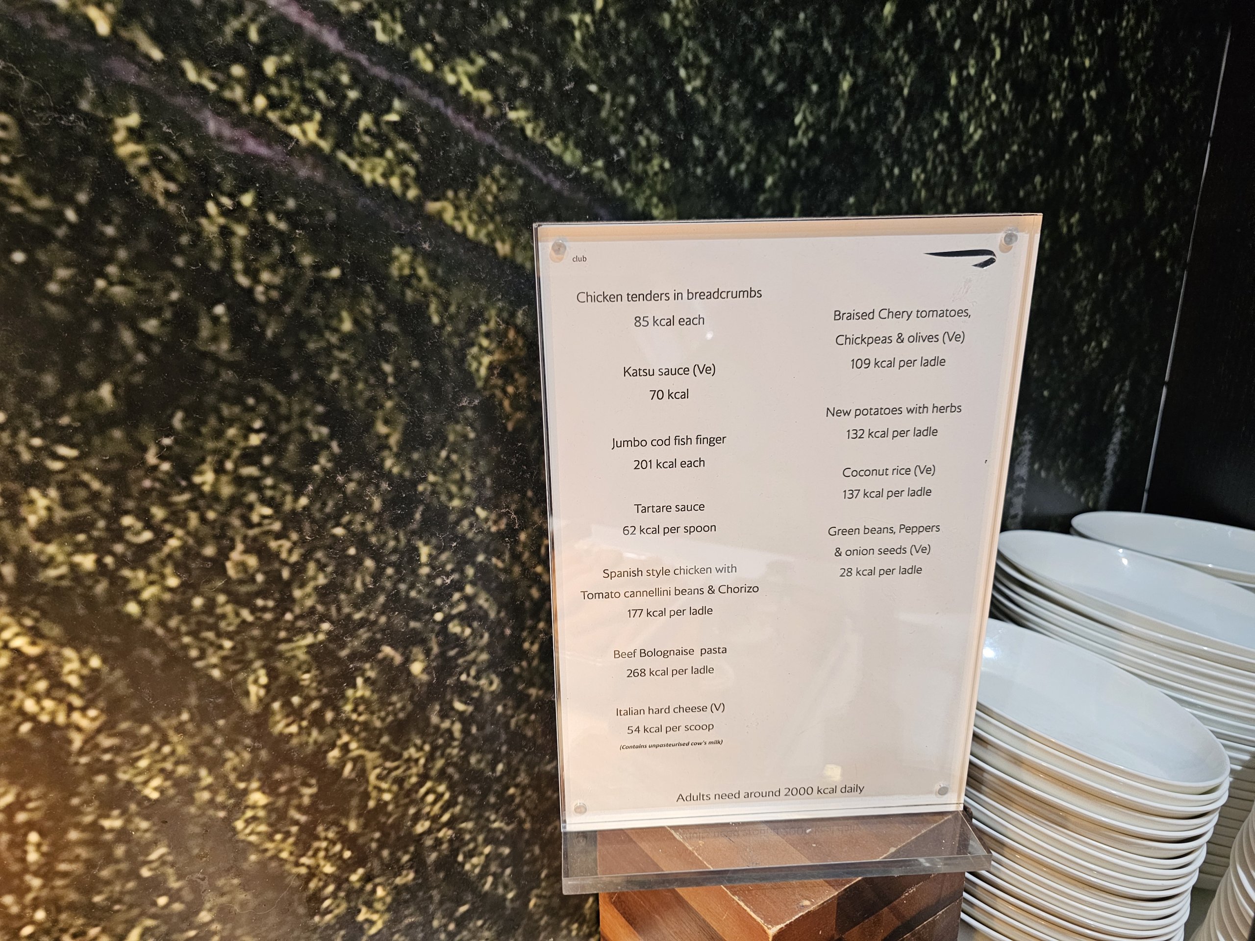 Positivt er det at det er et skilt med kaloriinnholdet i all maten som tilbys.
