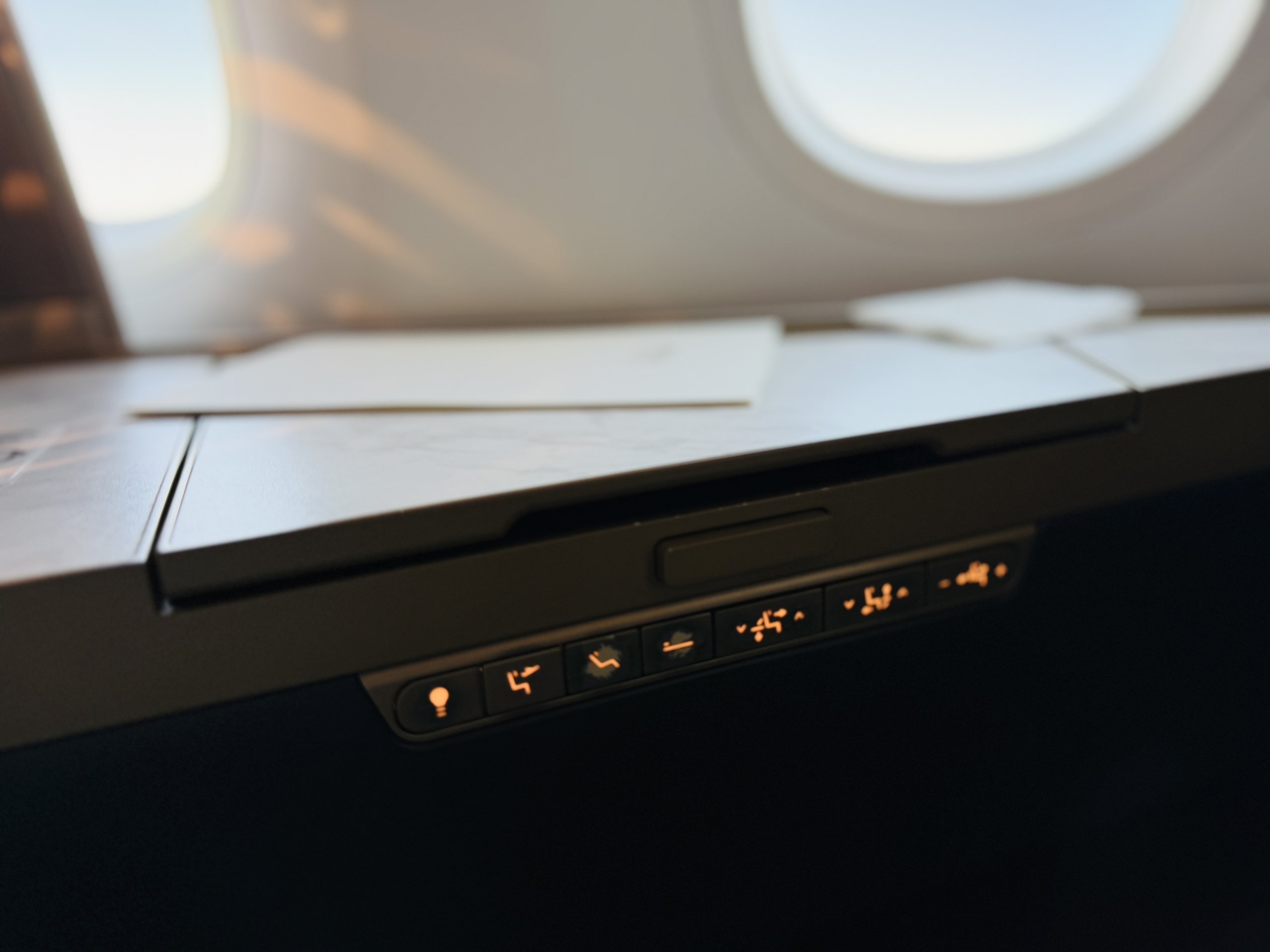Det er også oppbevaringsrom der du kan finne stille vann og hodetelefoner i full størrelse ved ombordstigning.