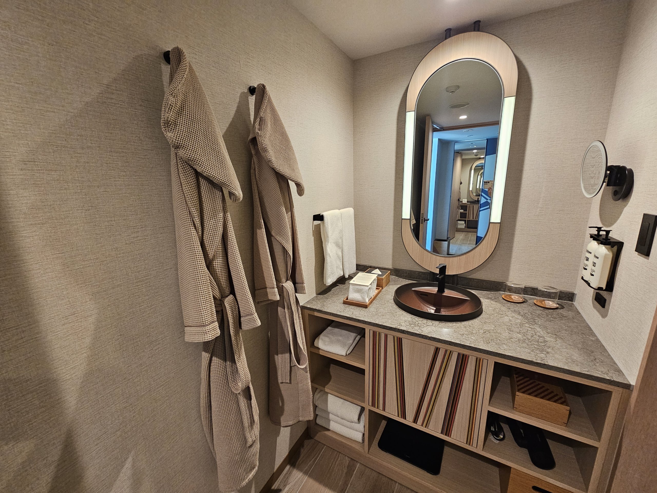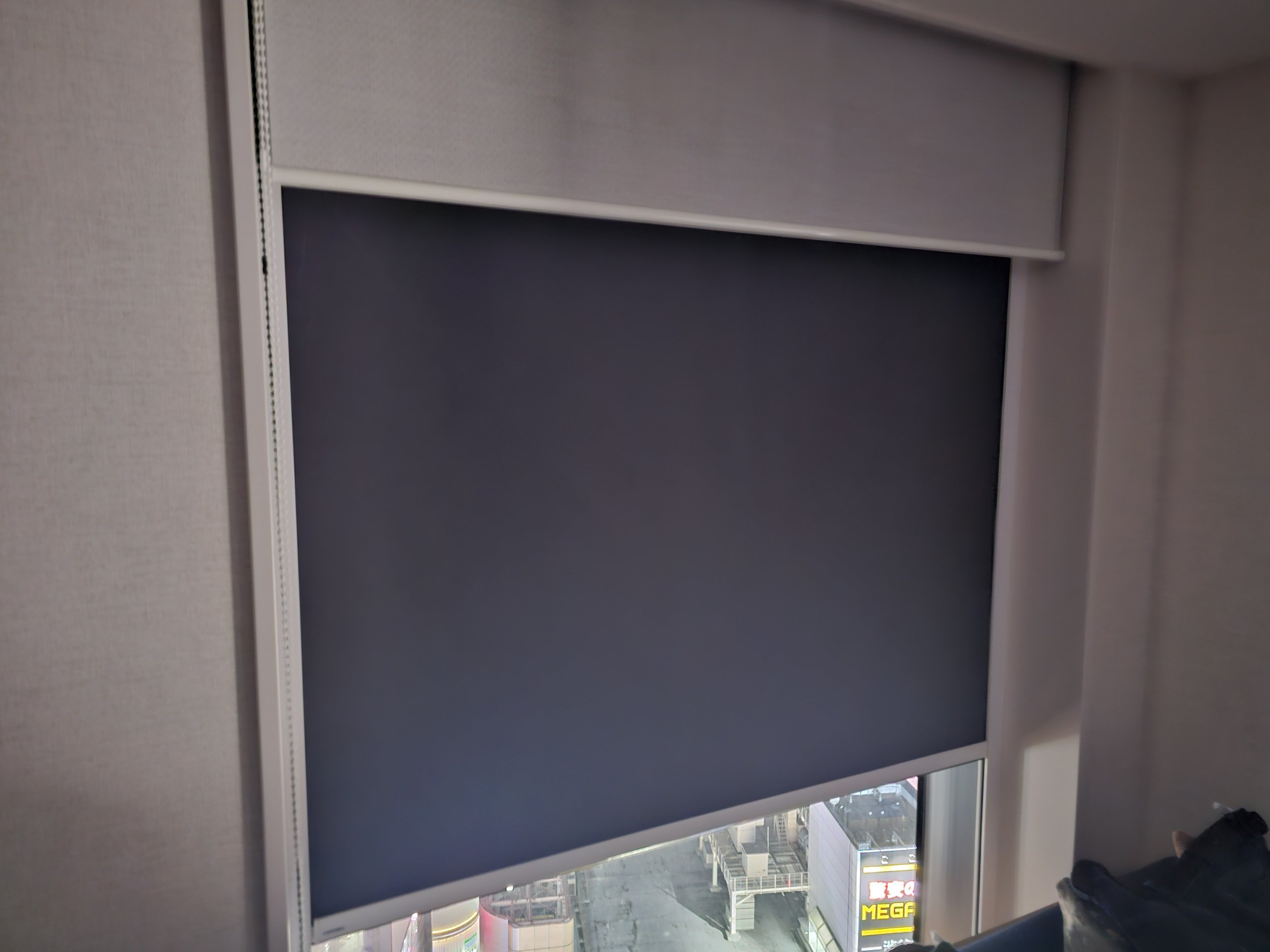 Siden Tokyos skyline lyser hele natten, er jeg litt bekymret for hvor mørkt rommet kommer til å bli. Alle vinduene har både solskjerming og 100 % mørkleggingsgardin, så rommet er helt mørkt om natten.