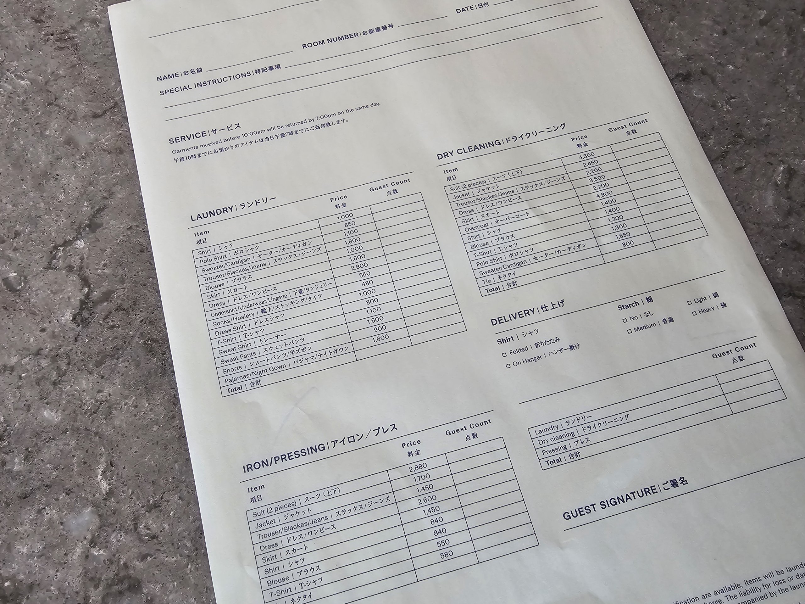 Den såkalte Laundry Service fungerer enkelt. Du legger de skitne klærne dine i en spesiell pose på rommet ditt, rengjøringstjenesten henter dem og returnerer dem vanligvis til rommet ditt vasket neste dag.