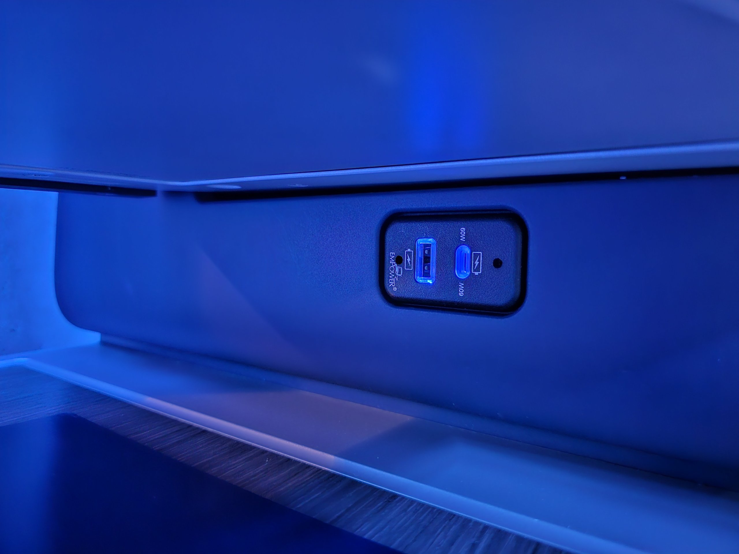 Setet har både USB-A- og USB-C-porter, samt et universaluttak for lading av elektronikk.