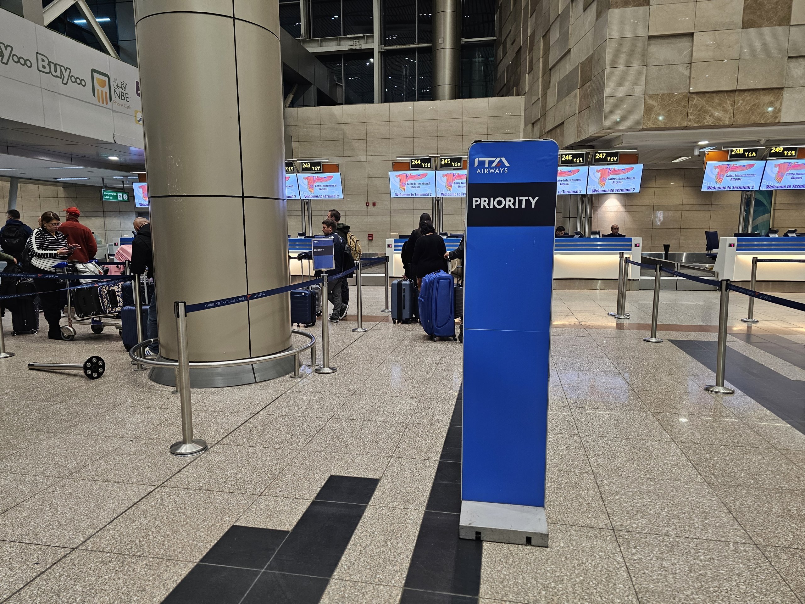 Jeg sjekker inn på Kairo lufthavn, der ITA Airways har fem dedikerte innsjekkingsskranker i terminal 2.