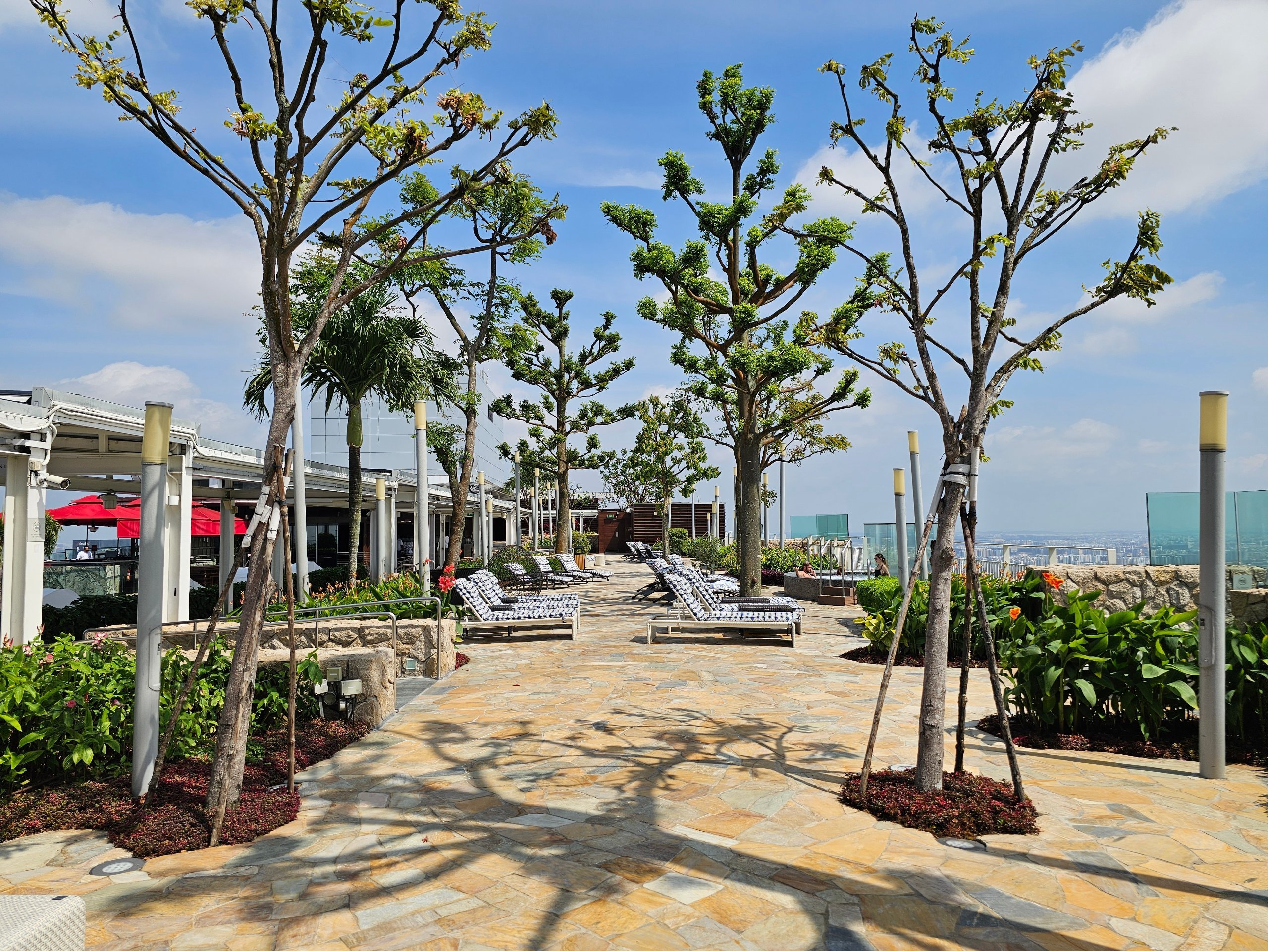 Solsengene er også plassert på den andre siden av taket der det ikke er basseng og det er mer stille.