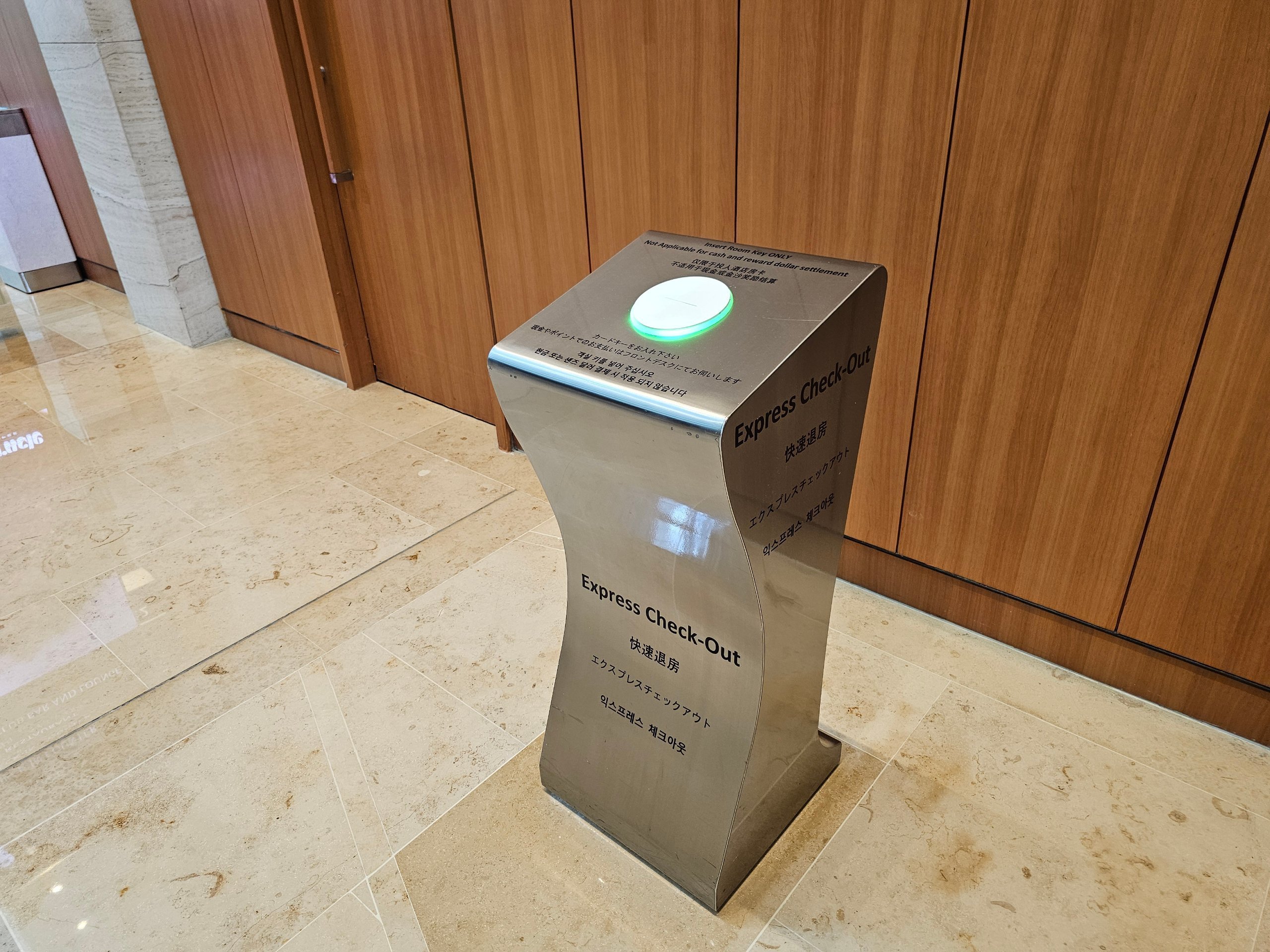 Utsjekking går veldig raskt, og det finnes også en kontaktløs ekspressutsjekking der du bare stikker romkortet ditt inn i maskinen.