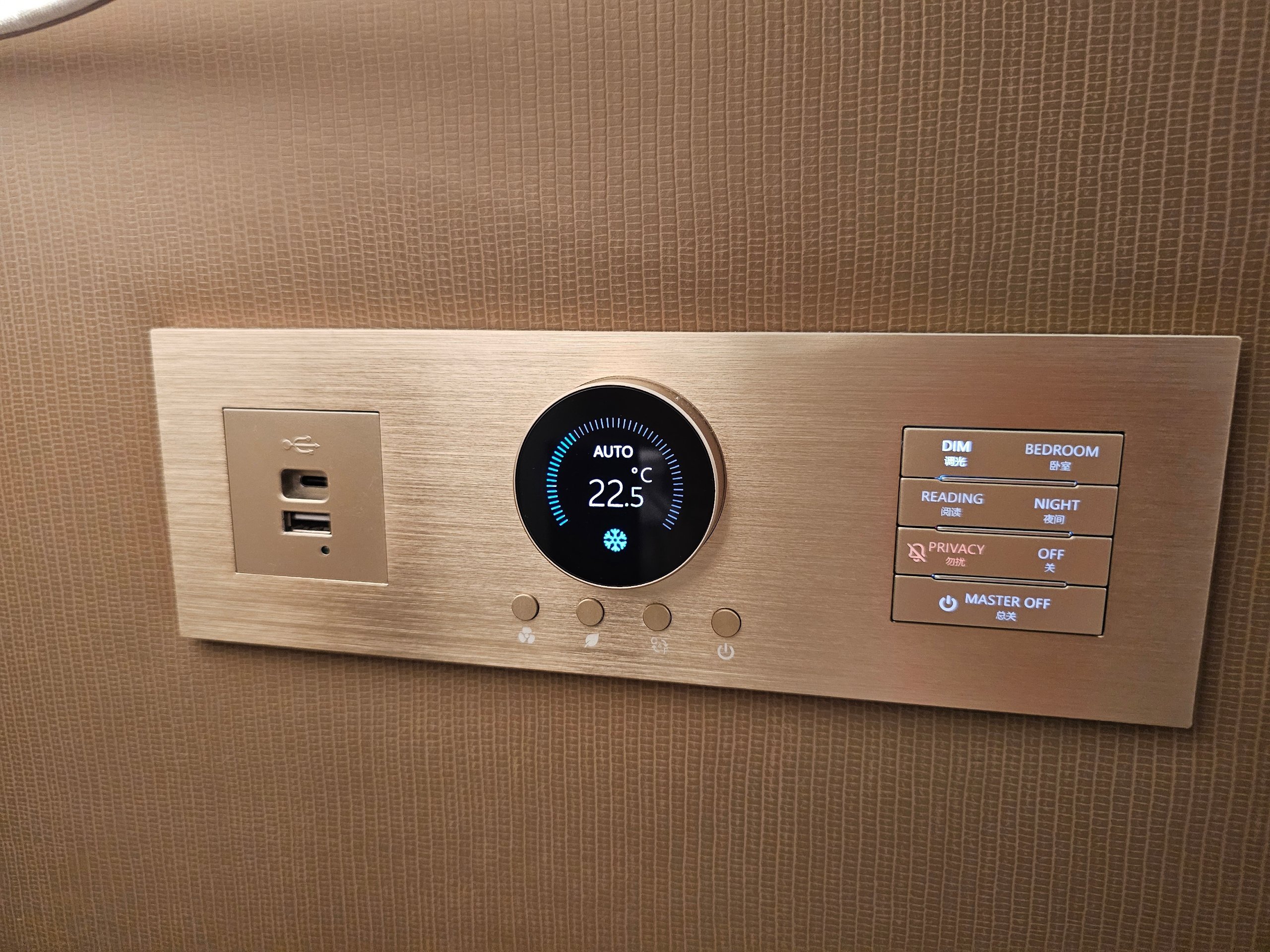 - seng av god kvalitet og stillegående klimaanlegg (du kan styre klimaanlegget fra sengen, noe som ikke akkurat er standard)