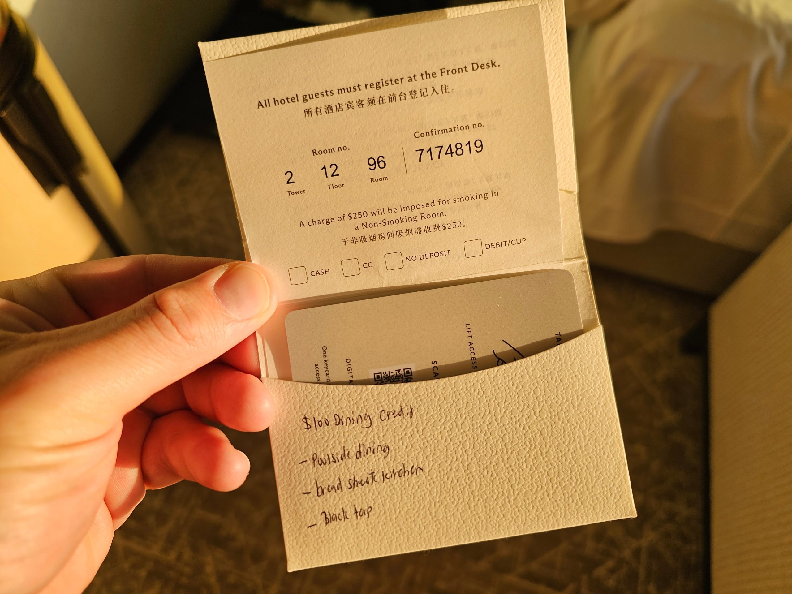 Kreditten på 100 sgd, som vi fikk for å bruke penger på flere av hotellets restauranter, ble enkelt kreditert.