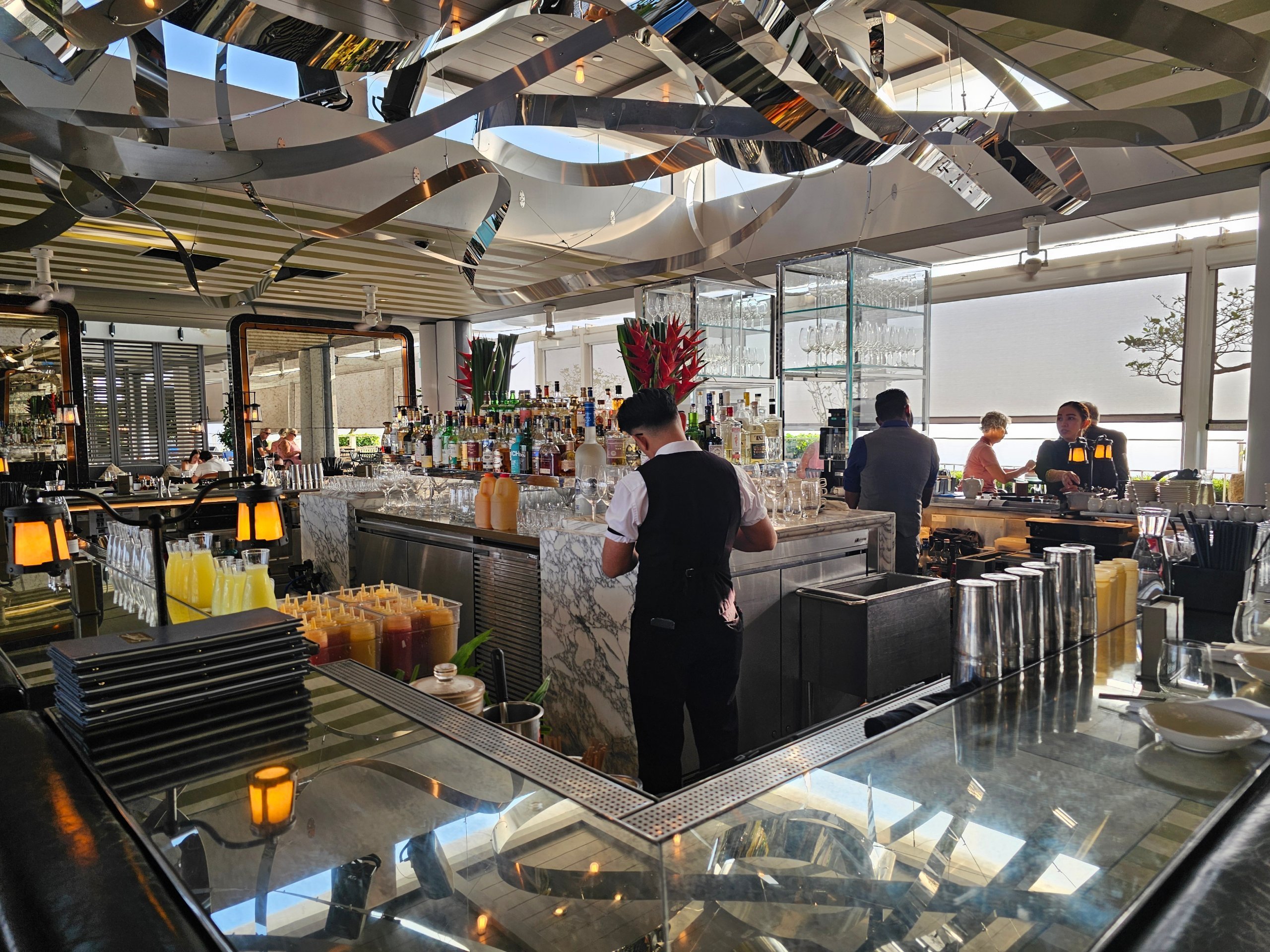 Frokost serveres i Spago Bar rett ved det ikoniske bassenget på taket.