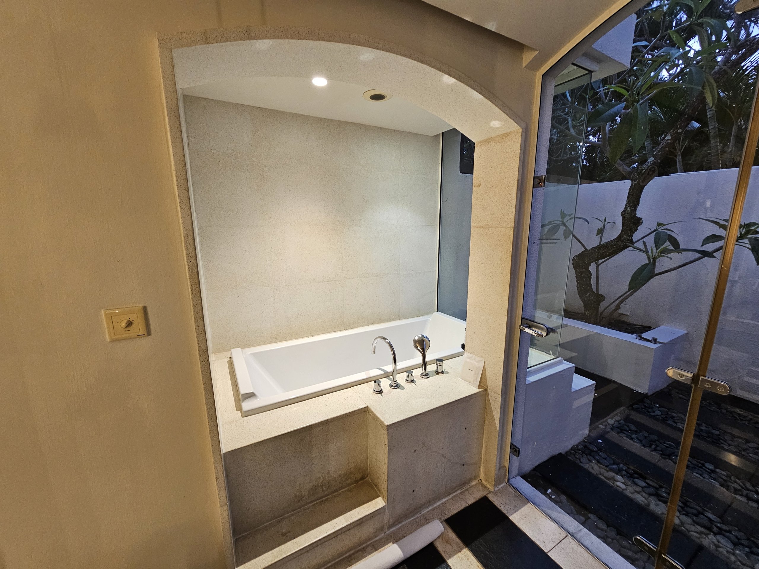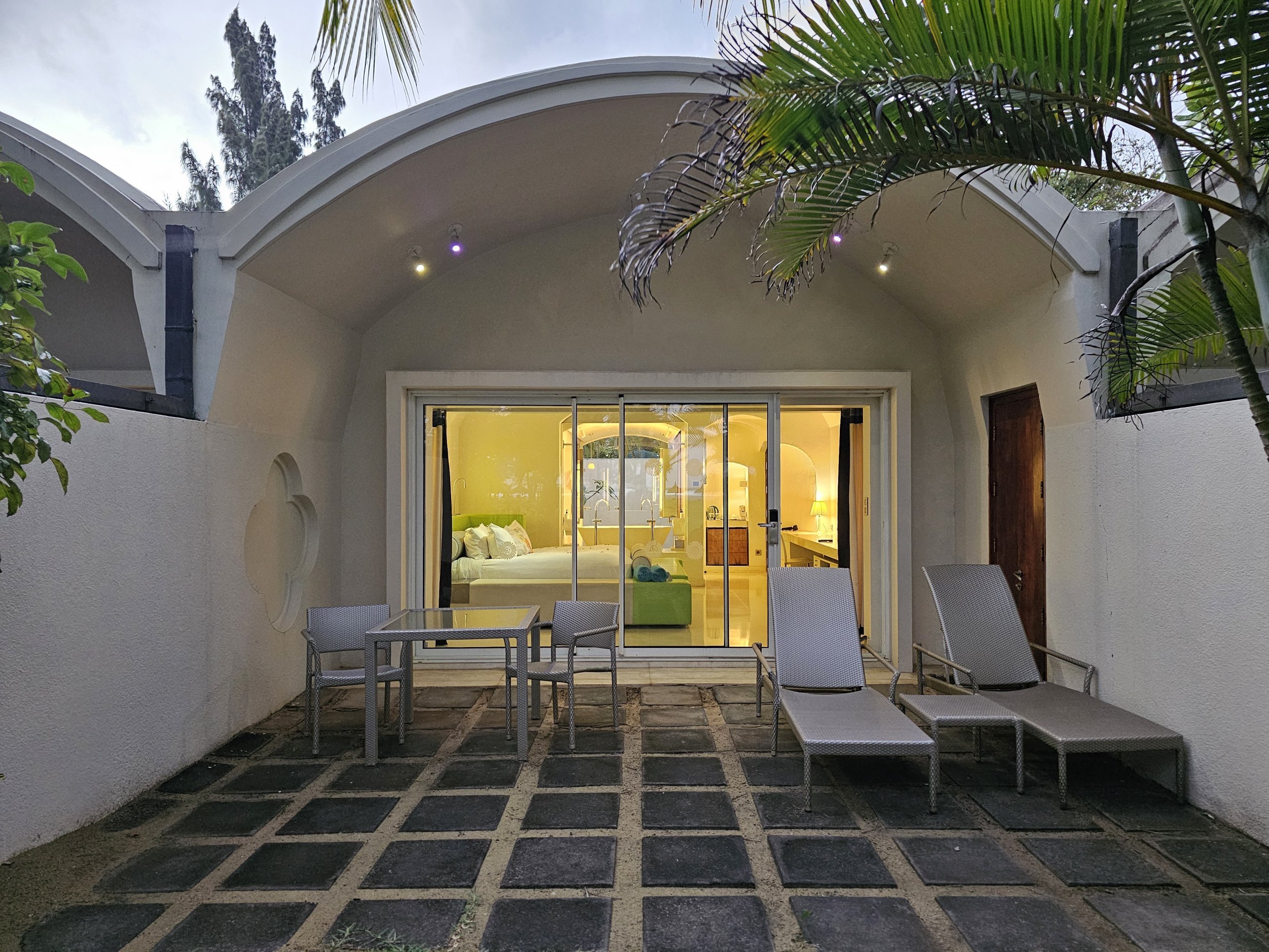 Jeg bodde på hotellet i 4 netter og valgte den nest laveste romkategorien SO Suite med egen terrasse med utsikt over hagen.
