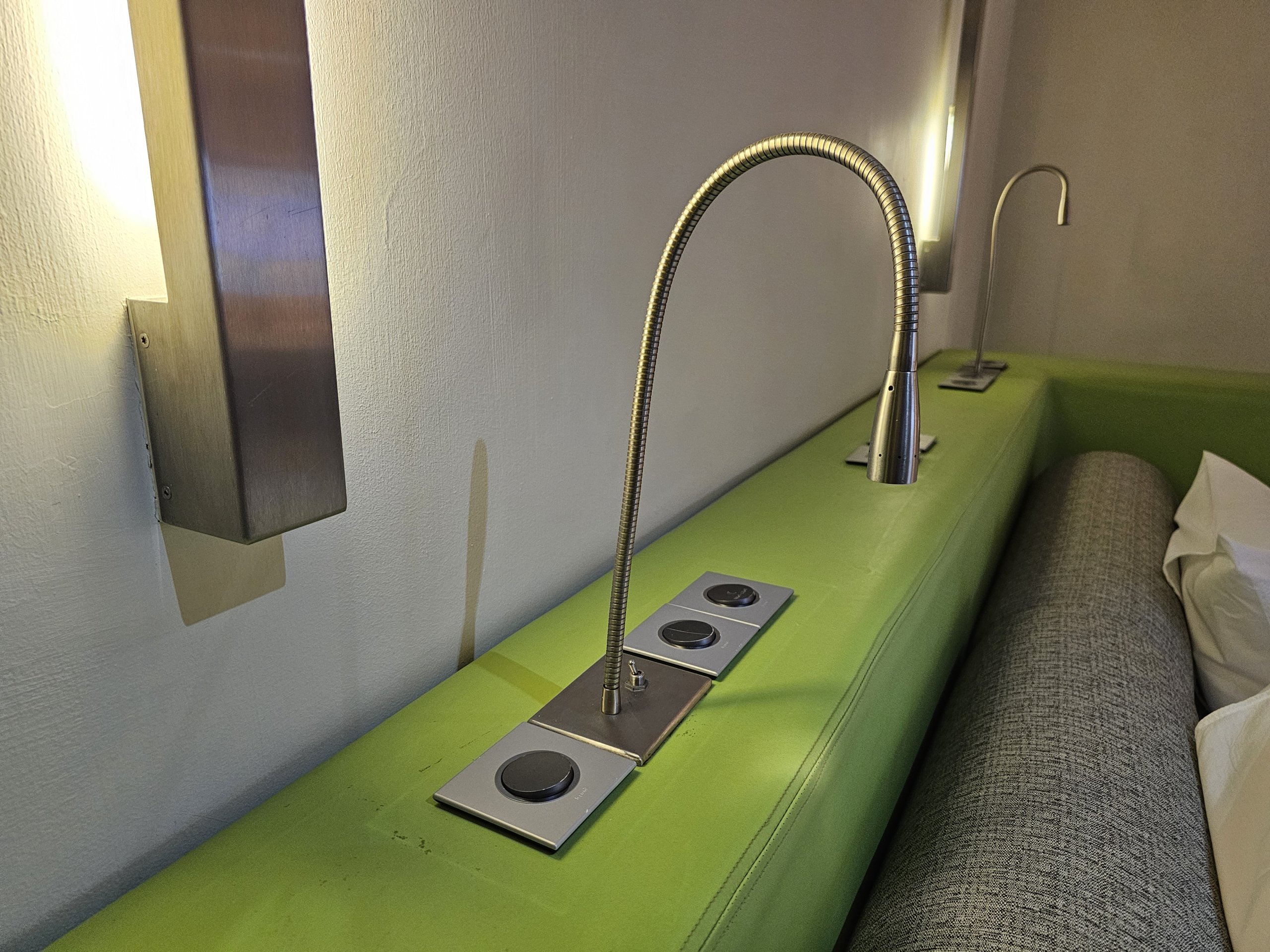 Lysreguleringen er ikke ved siden av nattbordet, men på sengegavlen, noe som igjen er litt upraktisk og uintuitivt.