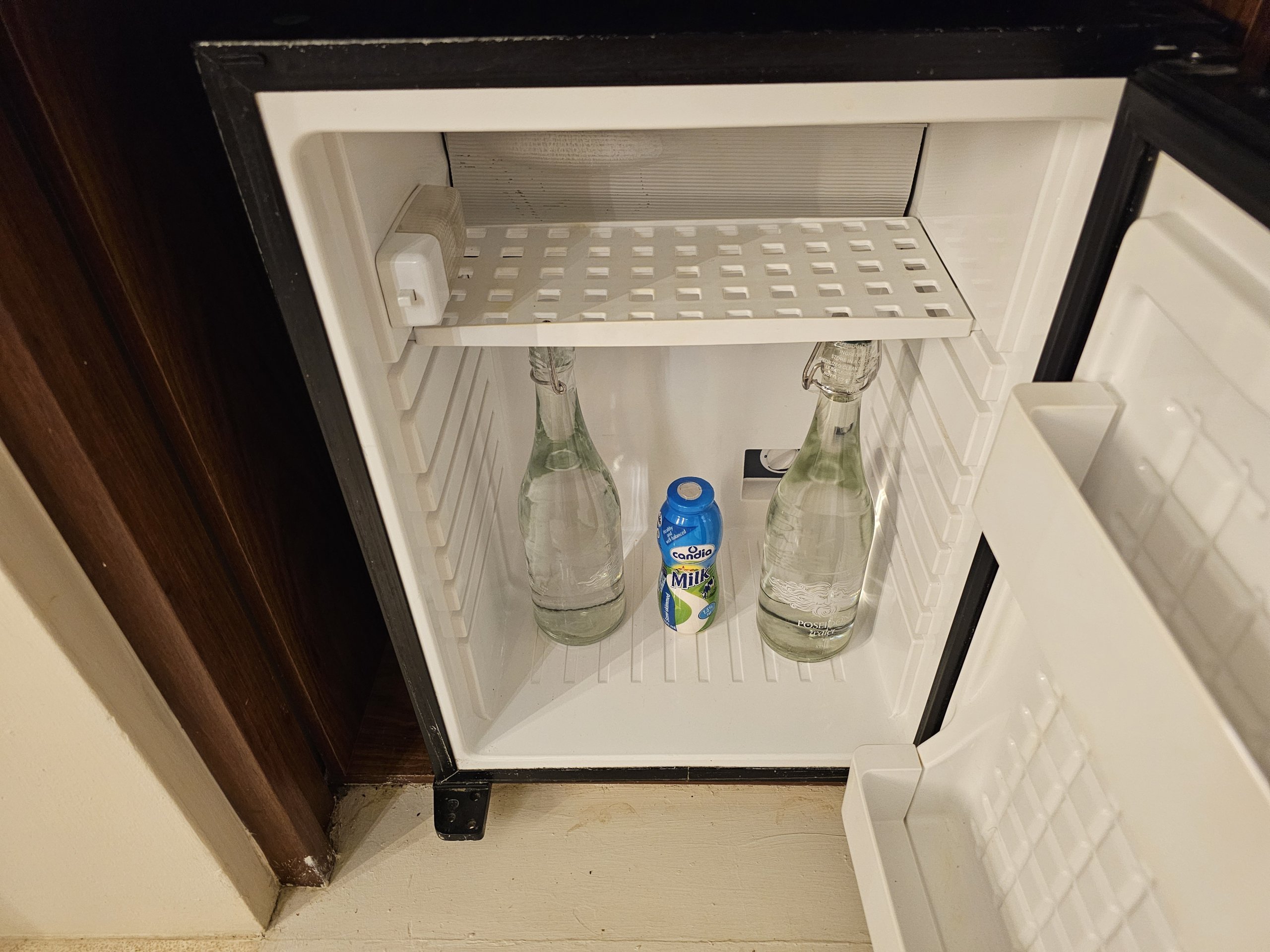 Suiten er romslig og veldig luftig. Umiddelbart når du kommer inn, er det et kjøleskap i gangen med to flasker vann og en flaske melk - gratis forbruk.