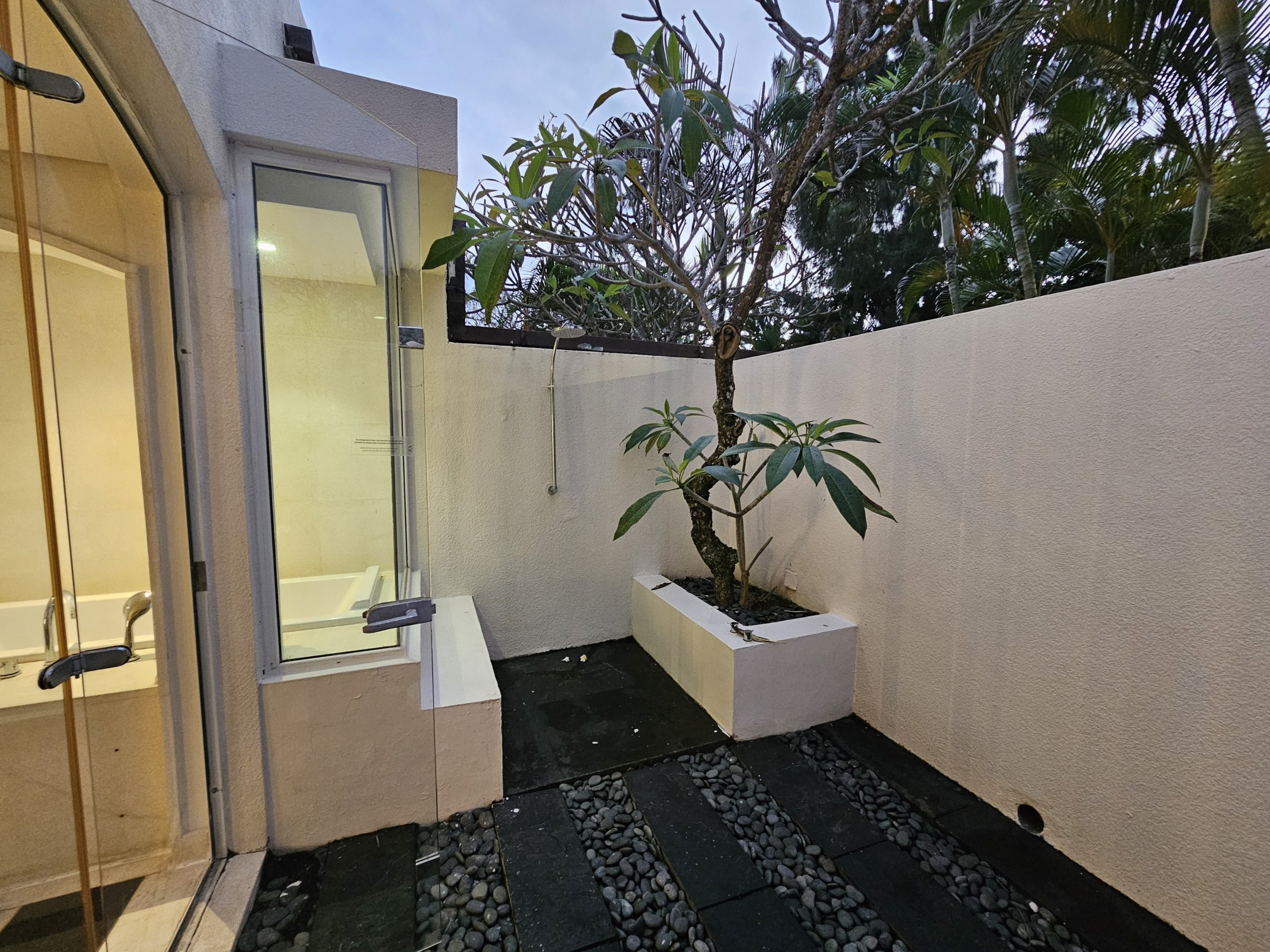 Den siste delen inneholder en utedusj som er egnet for dusjing etter bading i sjøen. Her renner det imidlertid bare kaldt vann, og det er ikke mulig å ta med såpe eller sjampo, som er festet til det innendørs badekaret.
