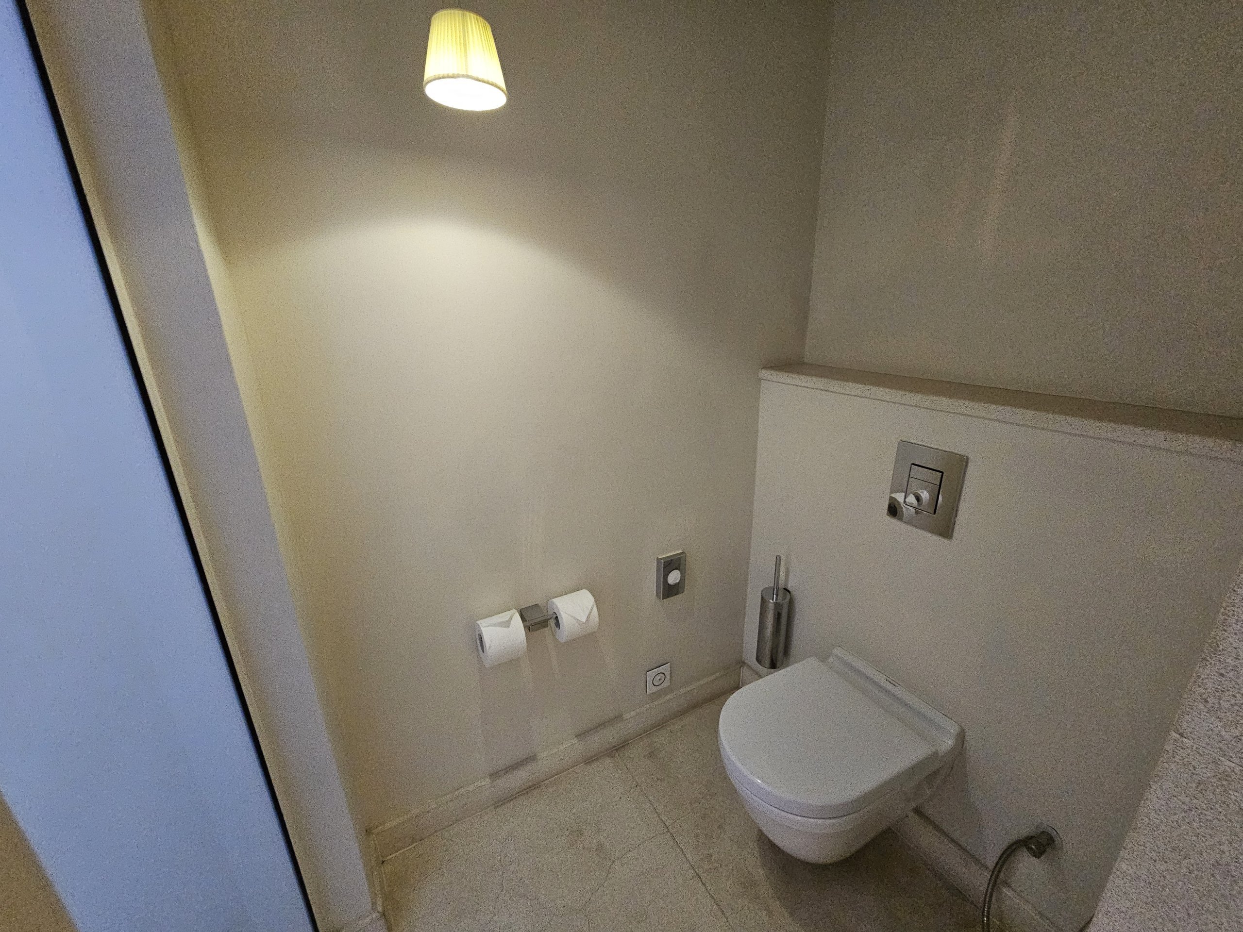 Toalettet er adskilt fra resten av badet med en dør. Det er ikke noe bidet, men bare en bidetdusj.