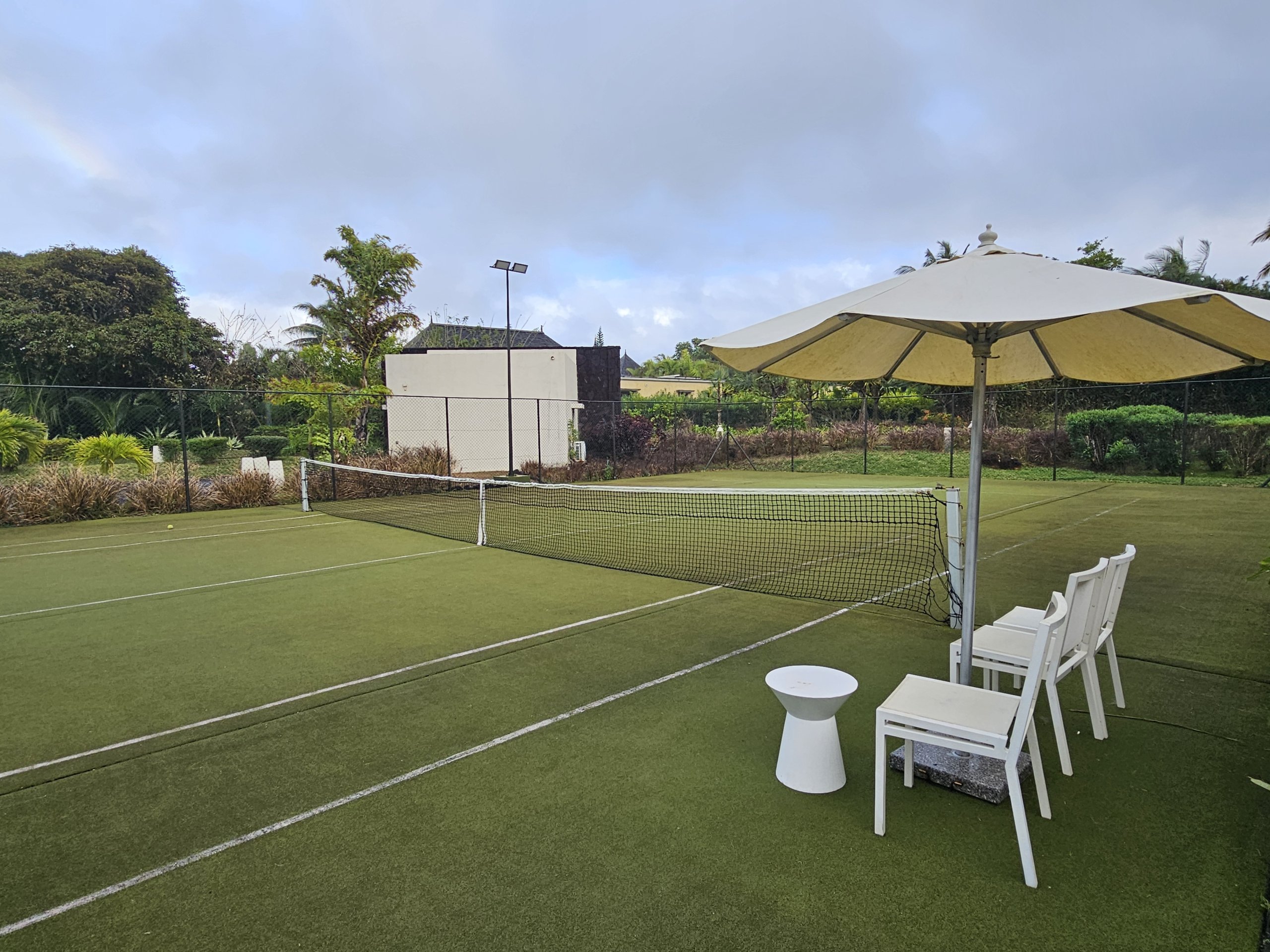 Mellom treningsstudioet og resepsjonen ligger det to tennisbaner, som også er gratis for hotellets gjester. Det er selvfølgelig også mulig å leie utstyr.