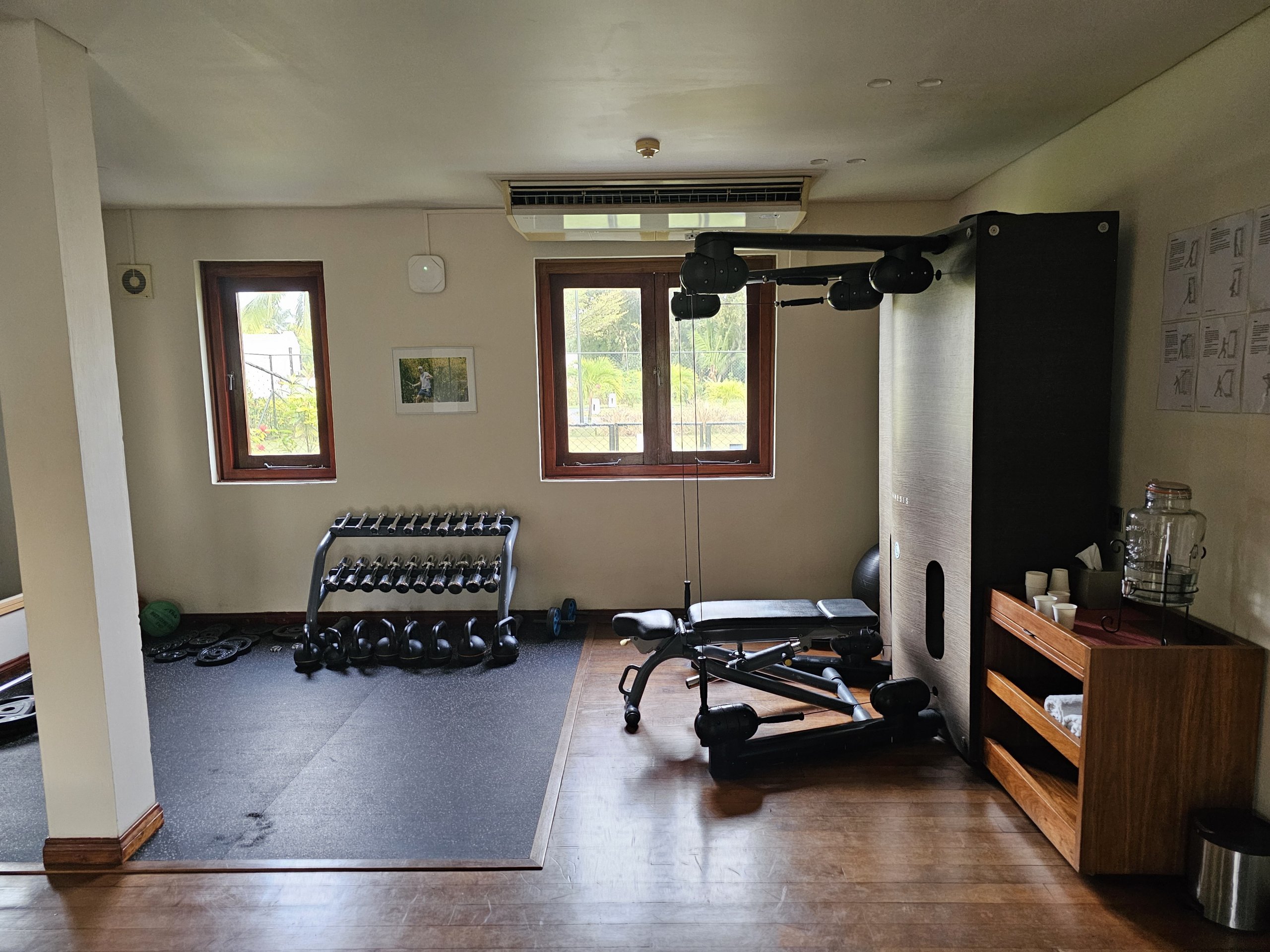 Rett ved siden av resepsjonsbygningen finner du et relativt lite, men greit utstyrt treningsstudio, som ligger i tilknytning til lekeplassen.