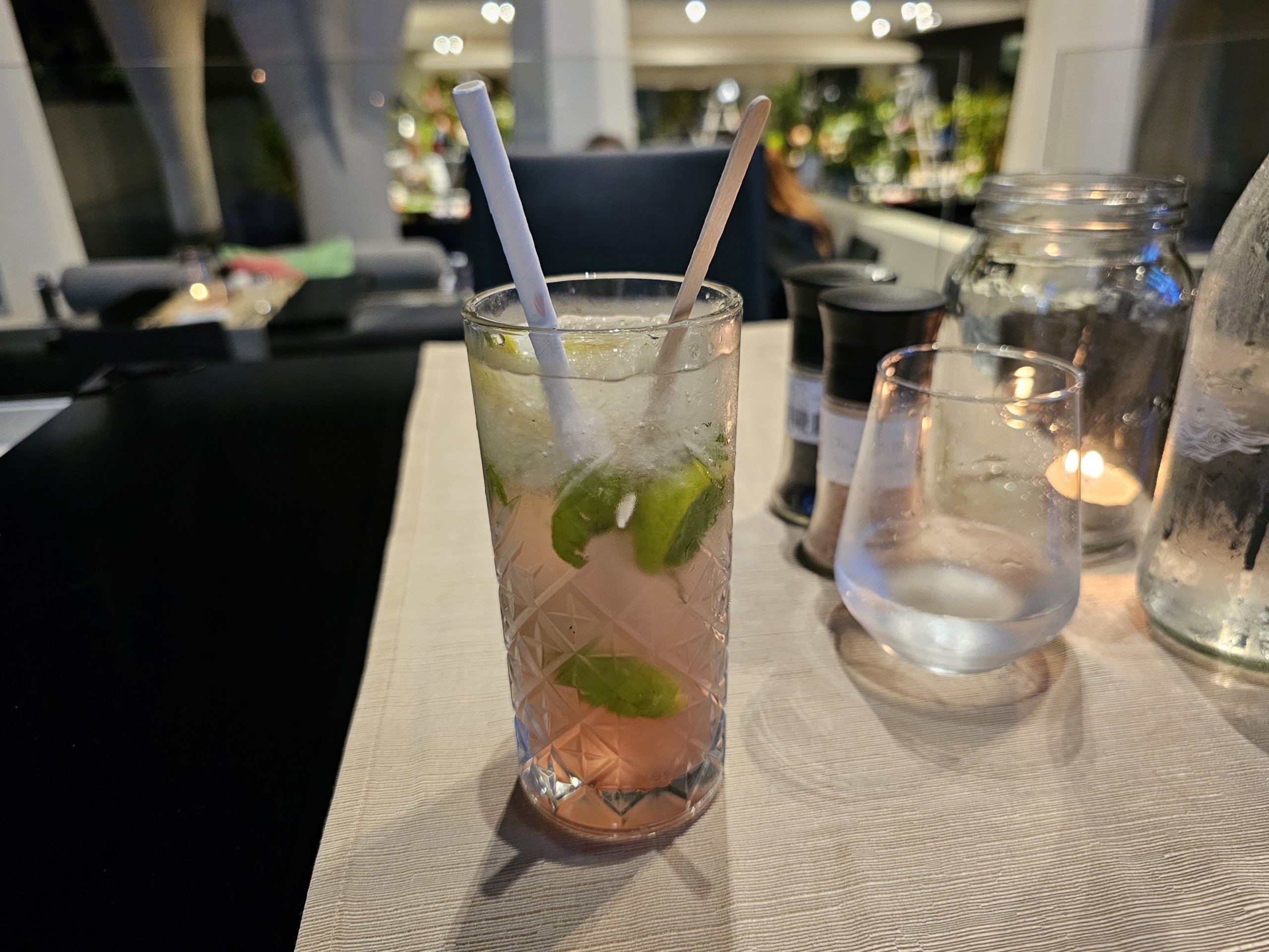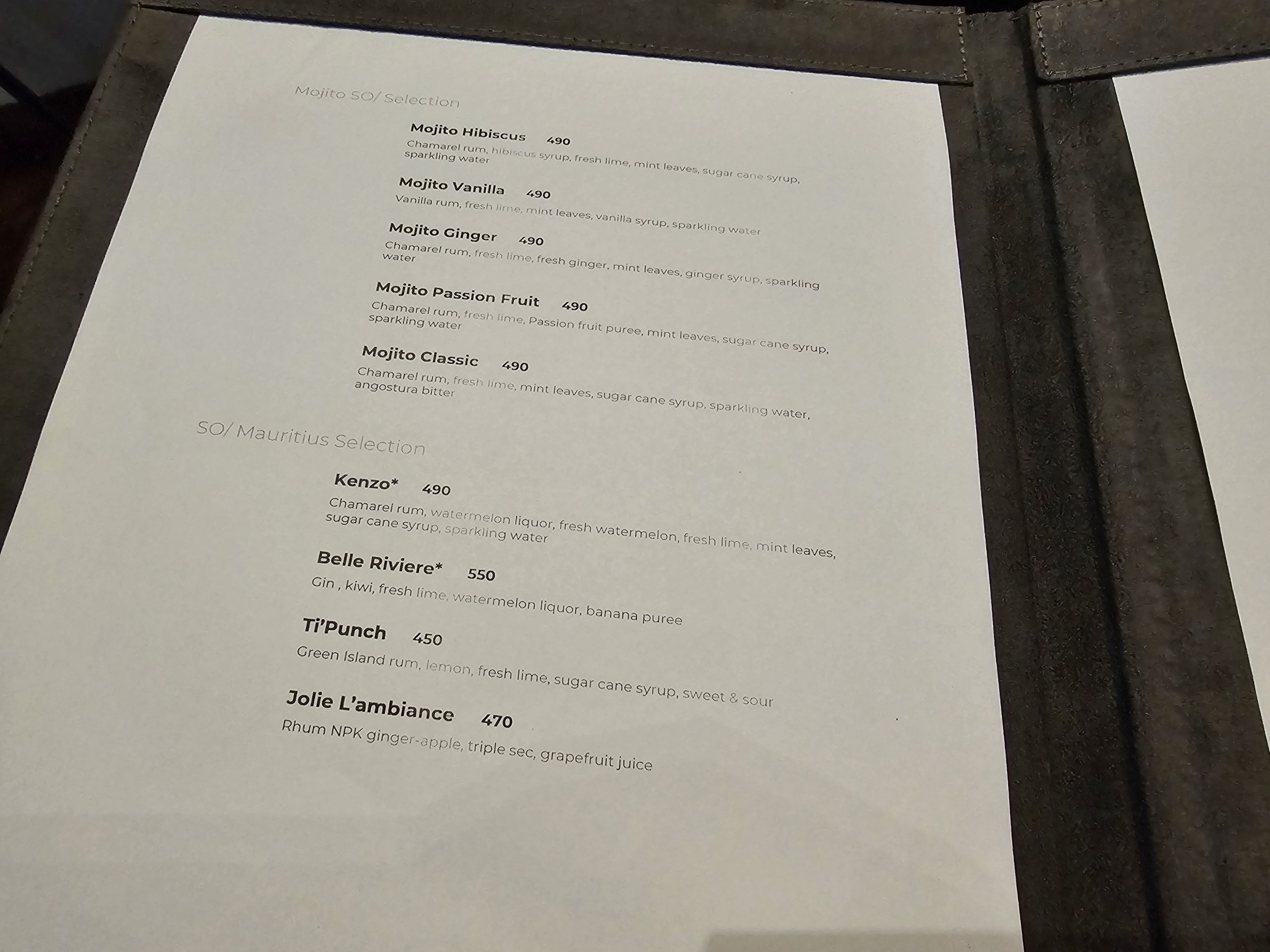 Jeg drakk også en god hibiskusmojito i Takamaka-baren etter middagen for 490 mur.