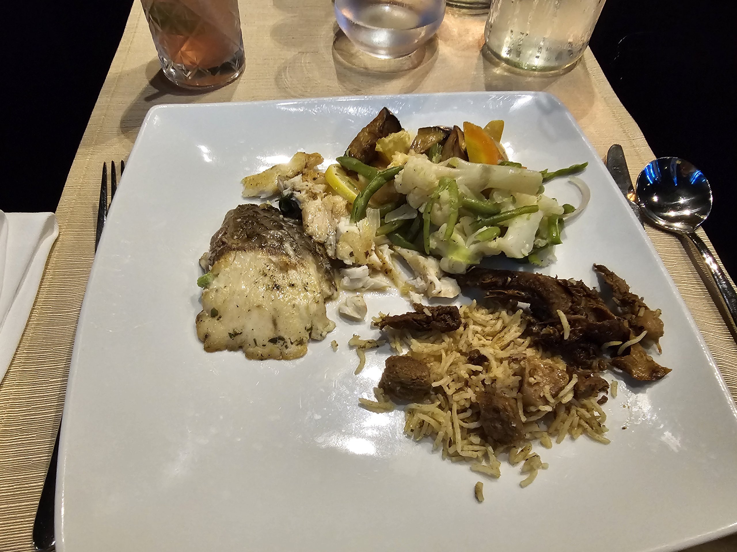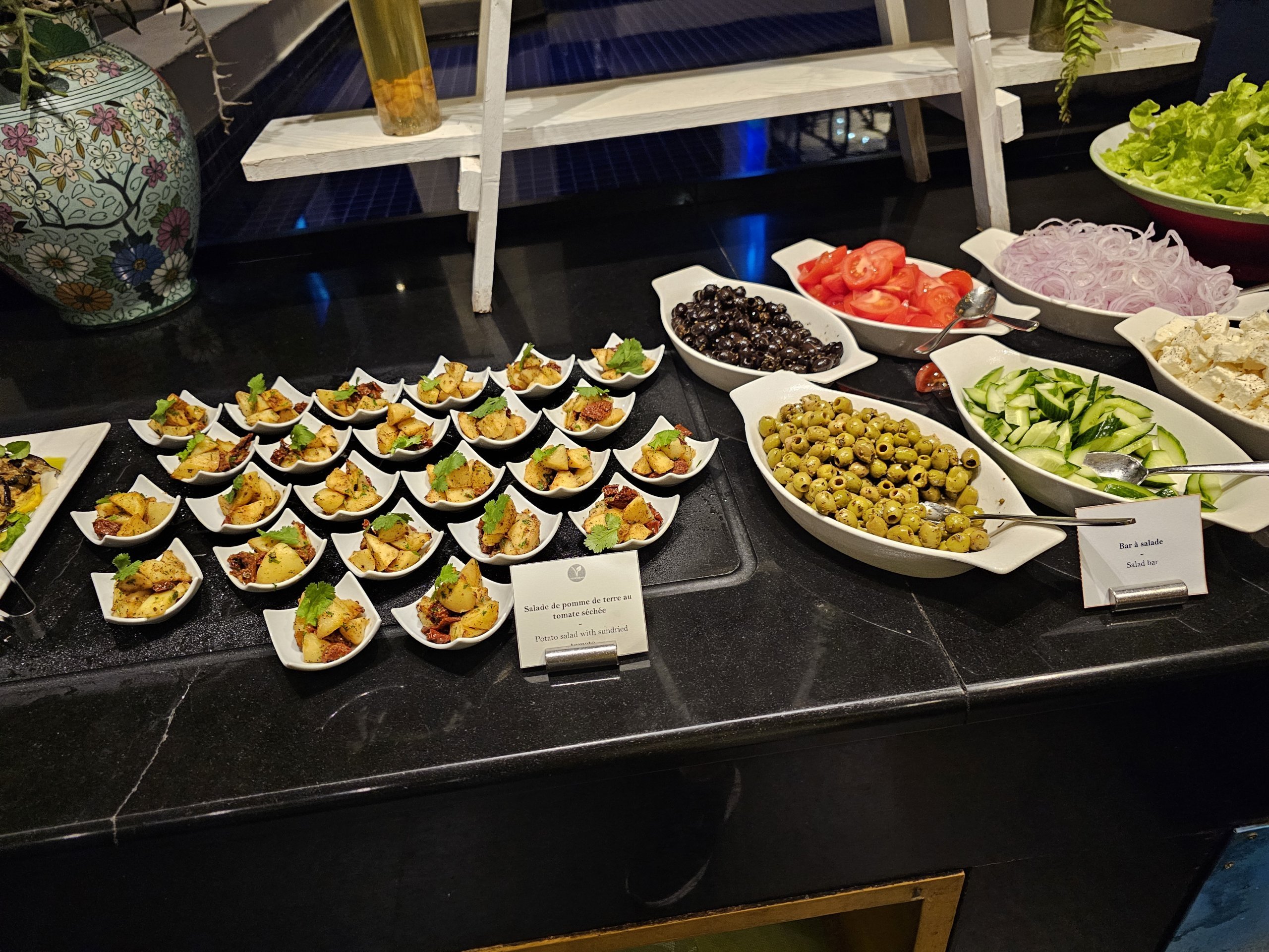Restauranten Flamboyant serverer a la carte-meny, dessverre bare i høysesongen. Jeg var her i lavsesongen, og middagen var ikke inkludert, så jeg betalte bare for den én gang.