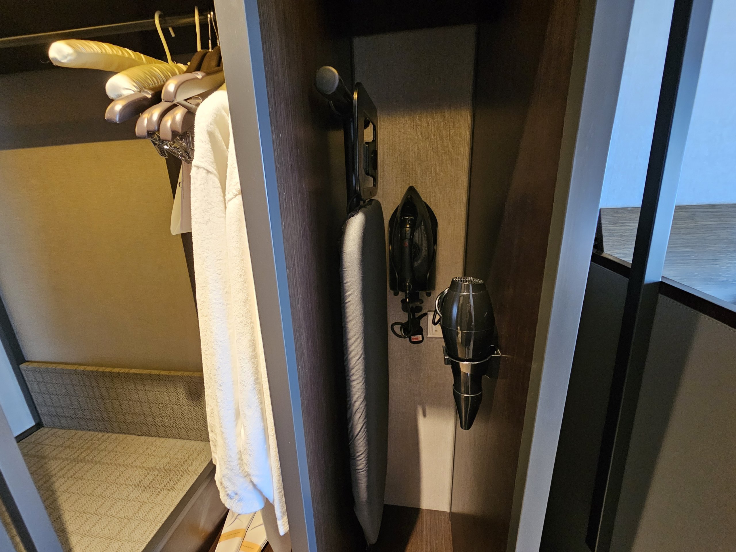 - badekåper, tøfler, strykebrett og hårføner
