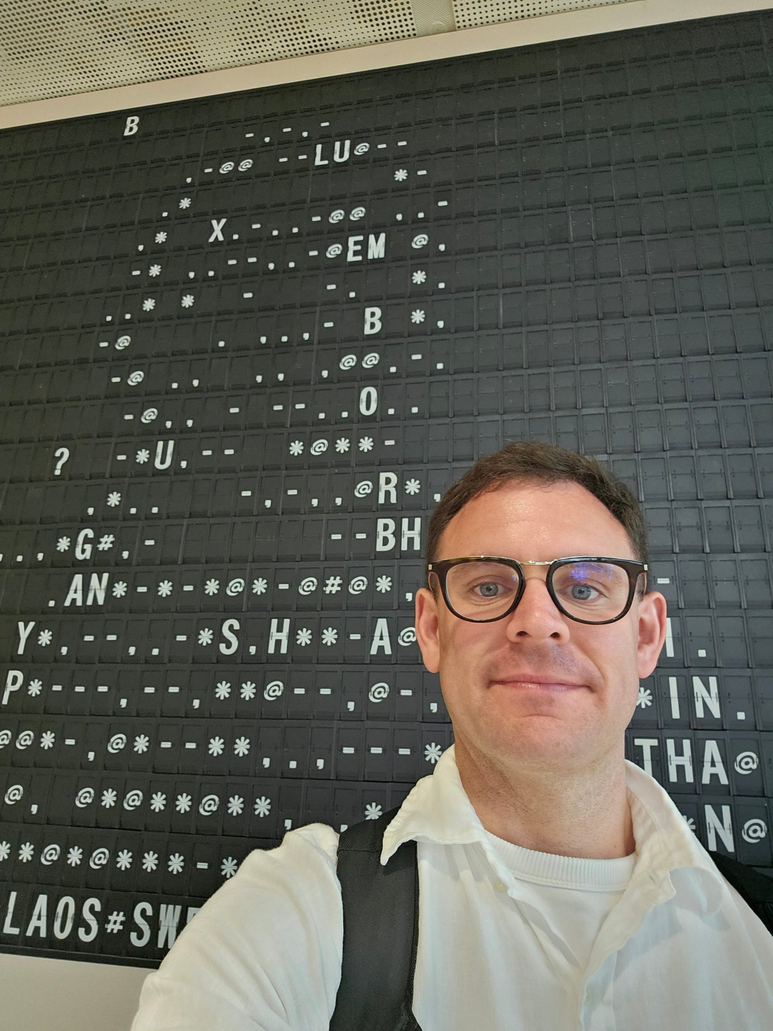 Du står foran en gammel avgangstavle, og den bruker flip-flops til å lage omrisset ditt.