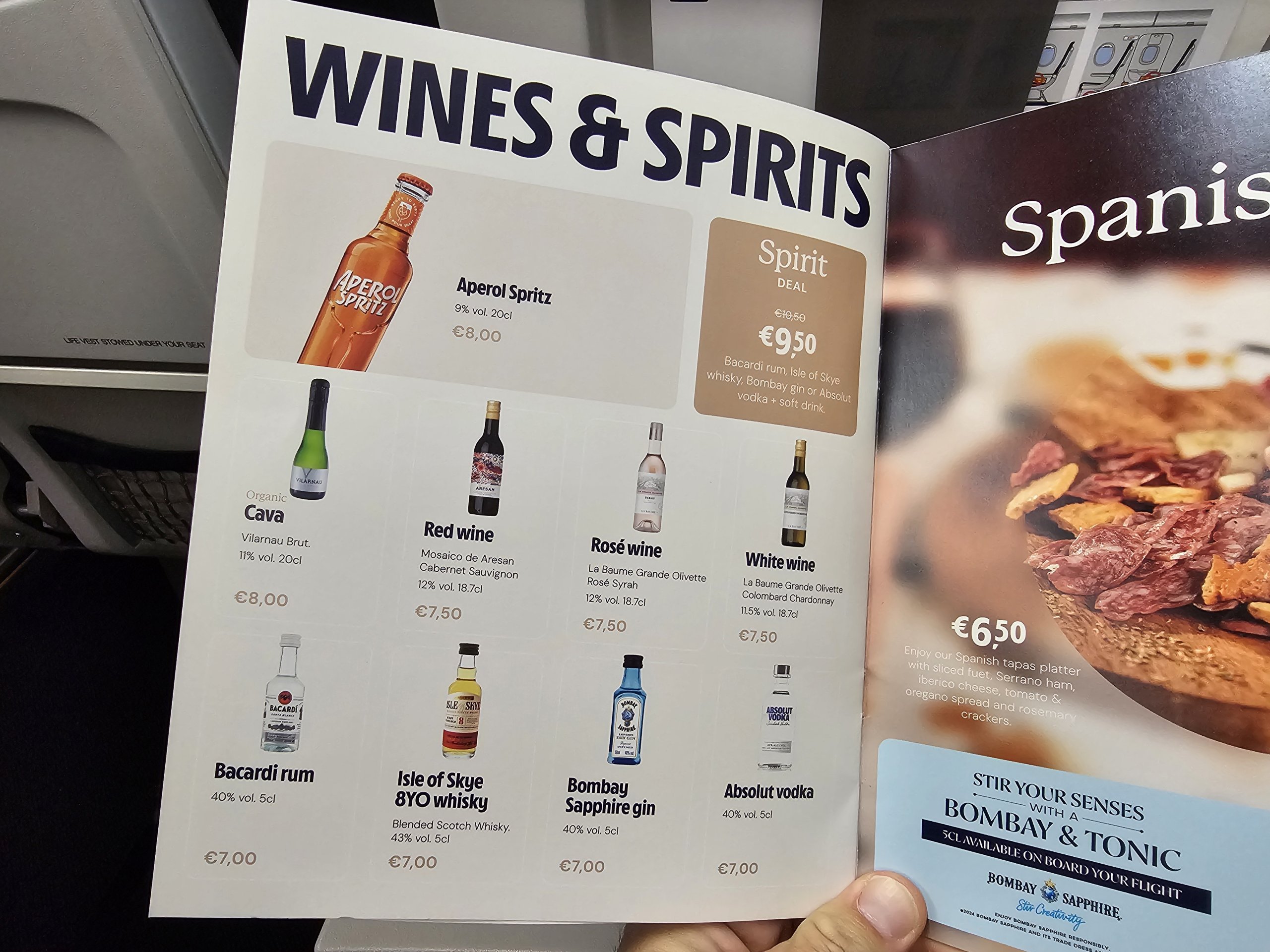 Passasjerer på økonomiklasse tilbys en gratis lett snack bestående av en liten baguette og brus på korte flyvninger innen Europa.