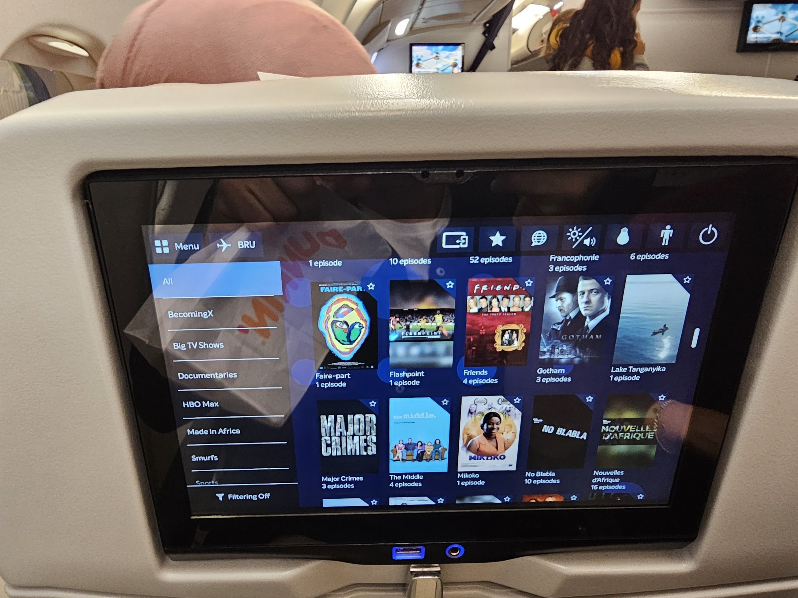 På Airbus A330-fly kan du bare lade elektronikken din via USB-C-porten, som er plassert under skjermen på underholdningssystemet.