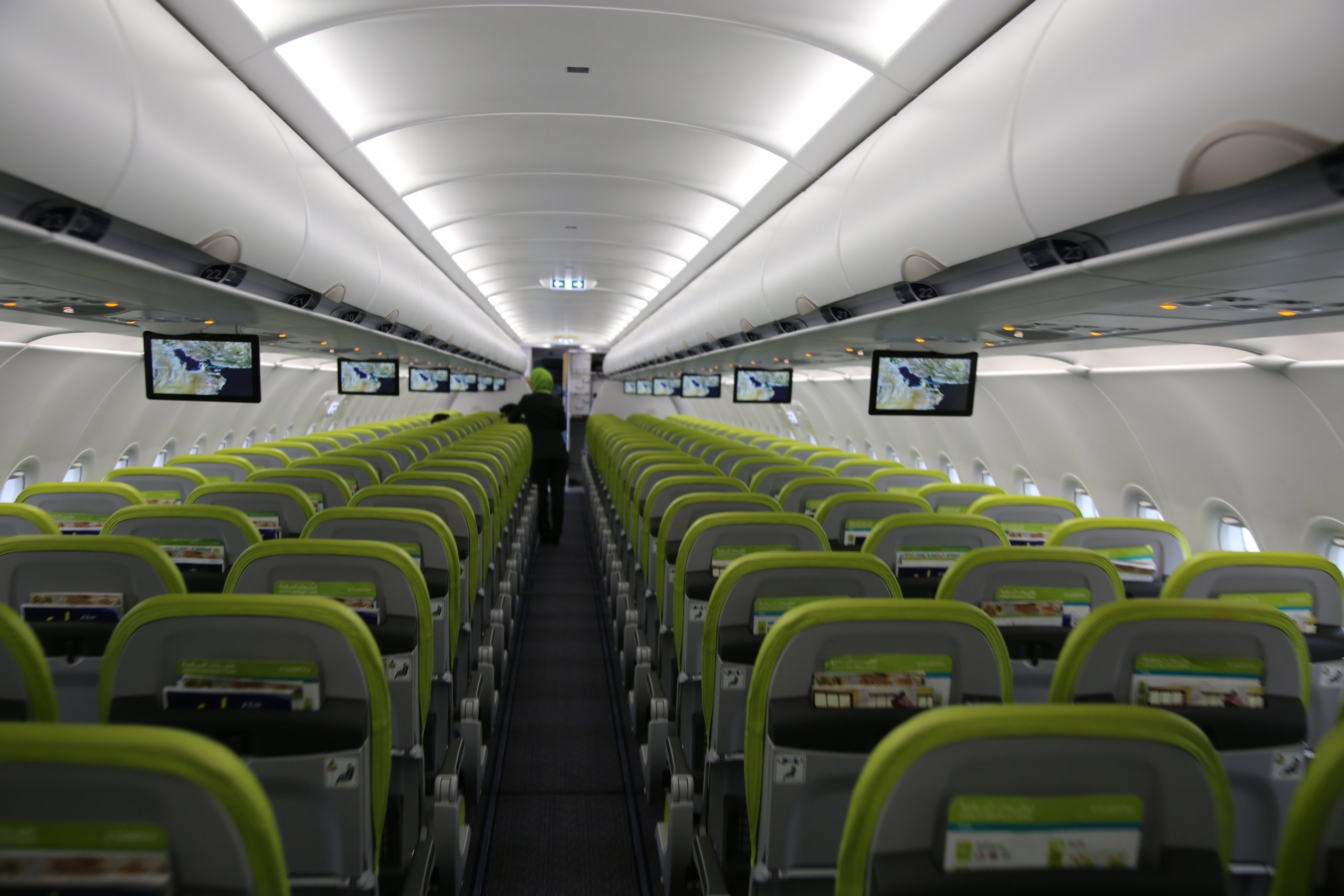 Setene har ingen individuelle skjermer, og det finnes bare noen få fellesskjermer som viser flyruten under flyturen.