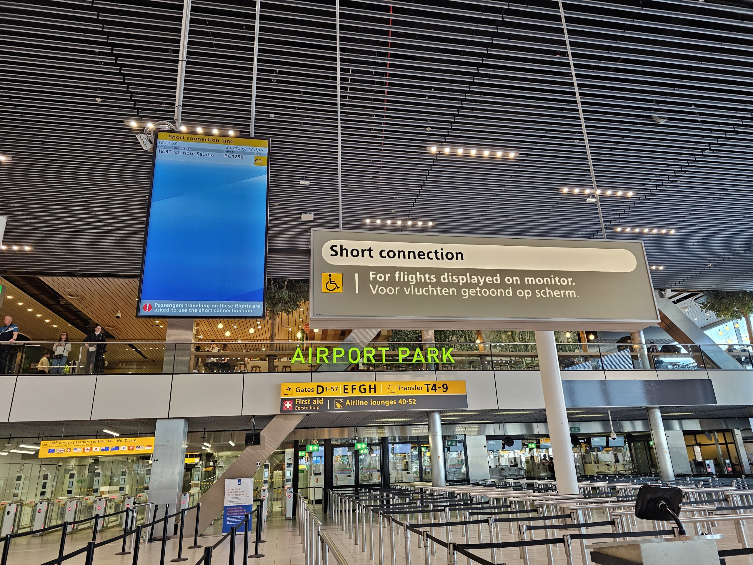 Amsterdam lufthavn er også en av de mest oversiktlige og effektive flyplassene i Europa for denne typen transfer.