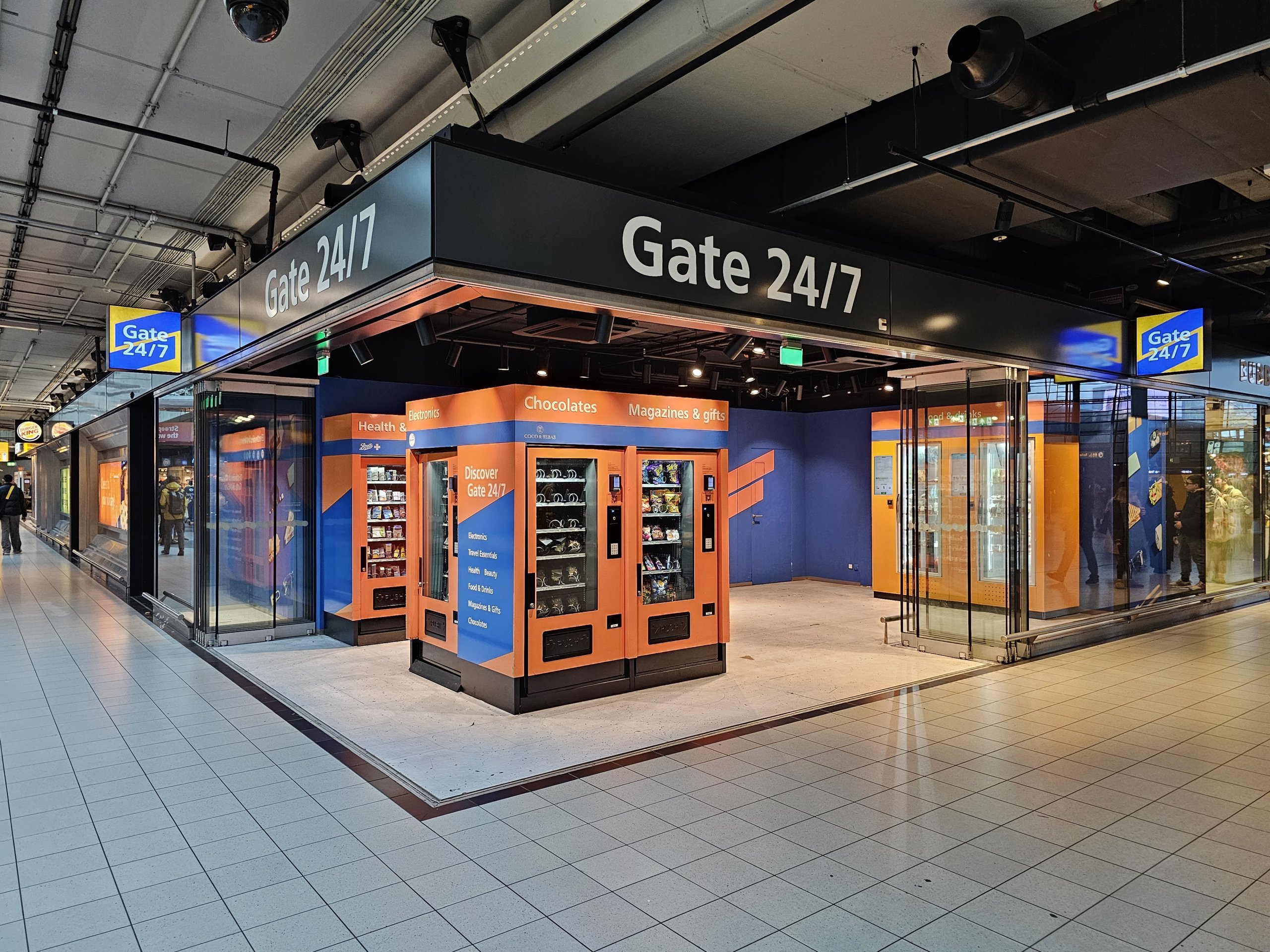 Automater som selger drikke, godteri og snacks, er plassert på forskjellige steder i publikumsområdene og transittområdene.