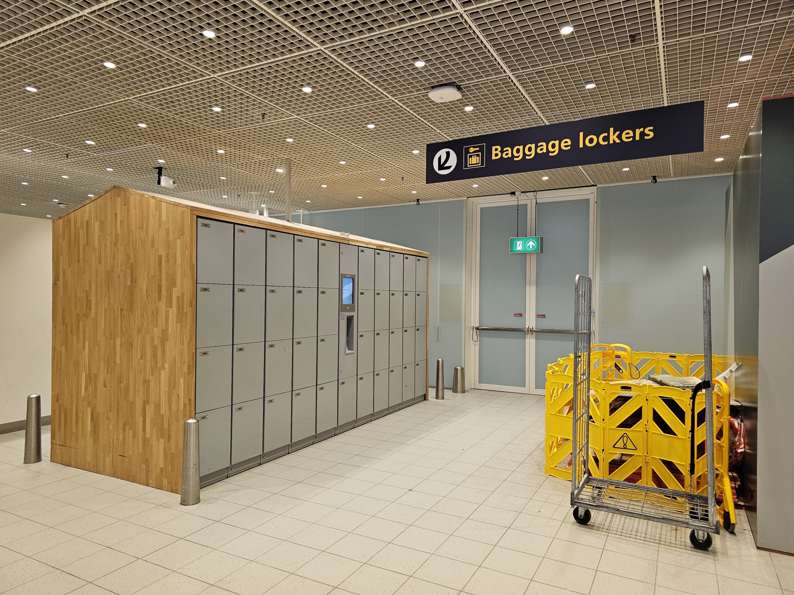 Du kan også oppbevare bagasjen i bagasjeskap i transittområdet, der prisen er 8 euro for 24 timer for alle skapstørrelser.