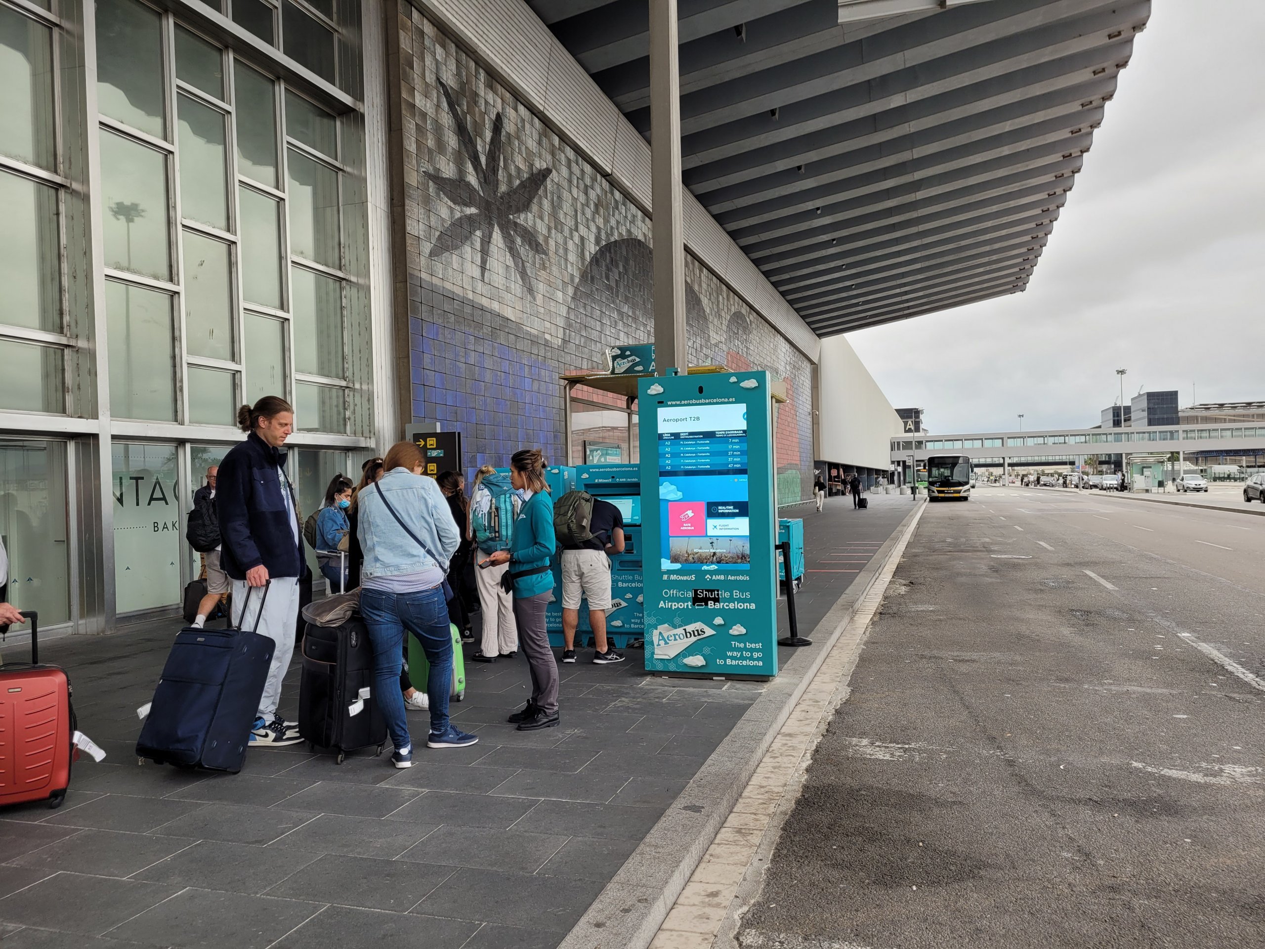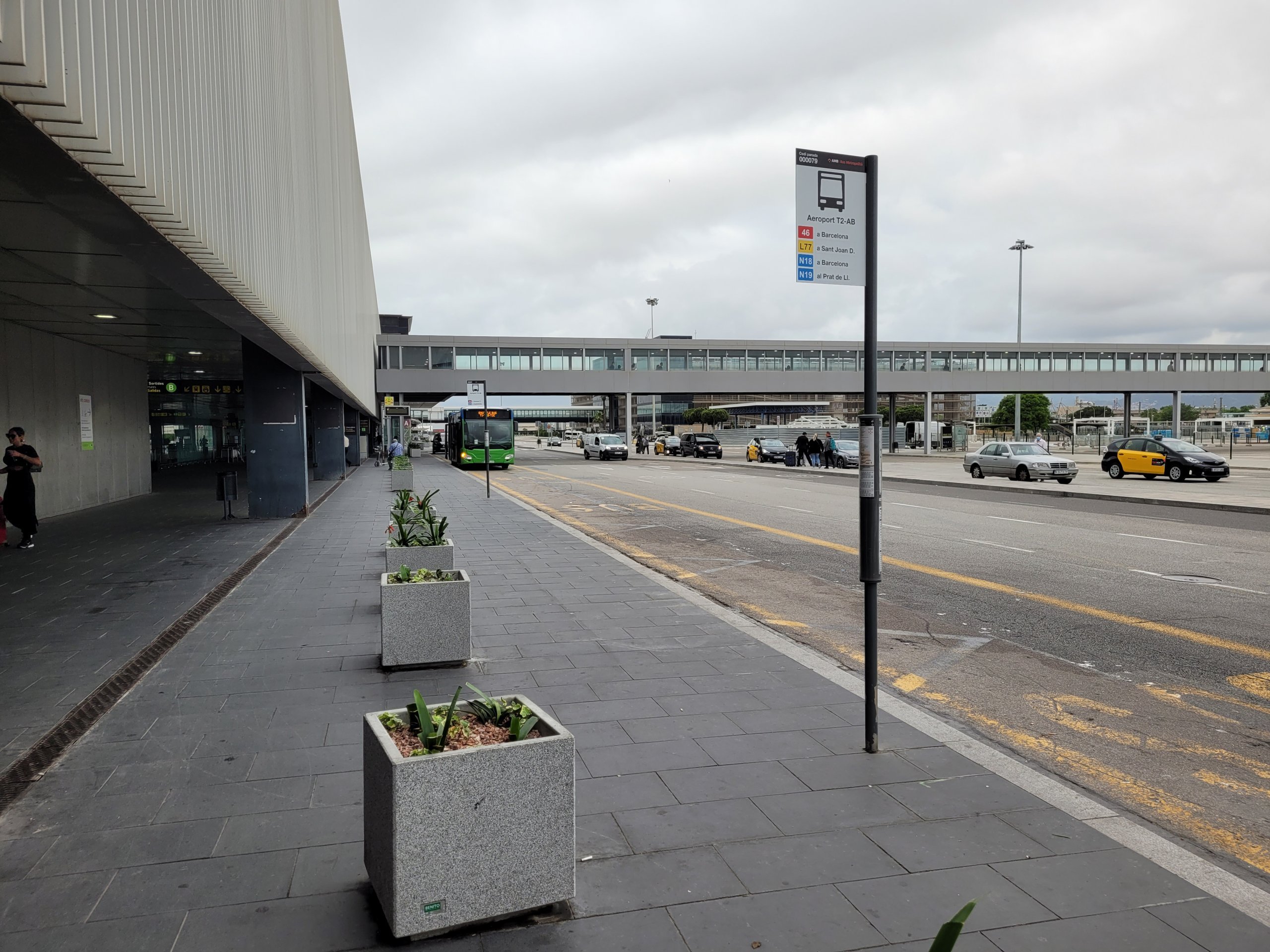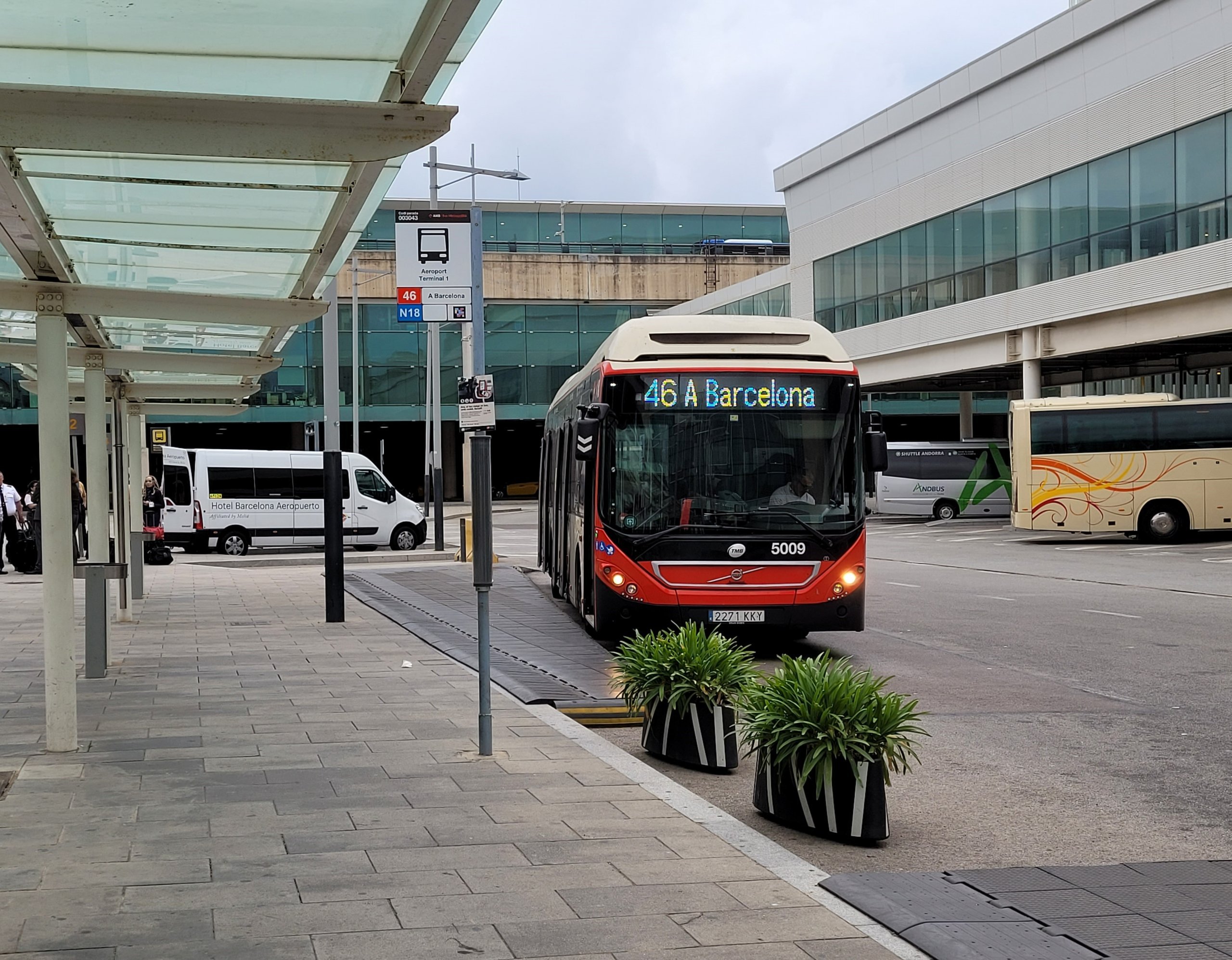 Holdeplassene ligger alltid rett foran begge terminalene, merket som TMB-buss Barcelona.