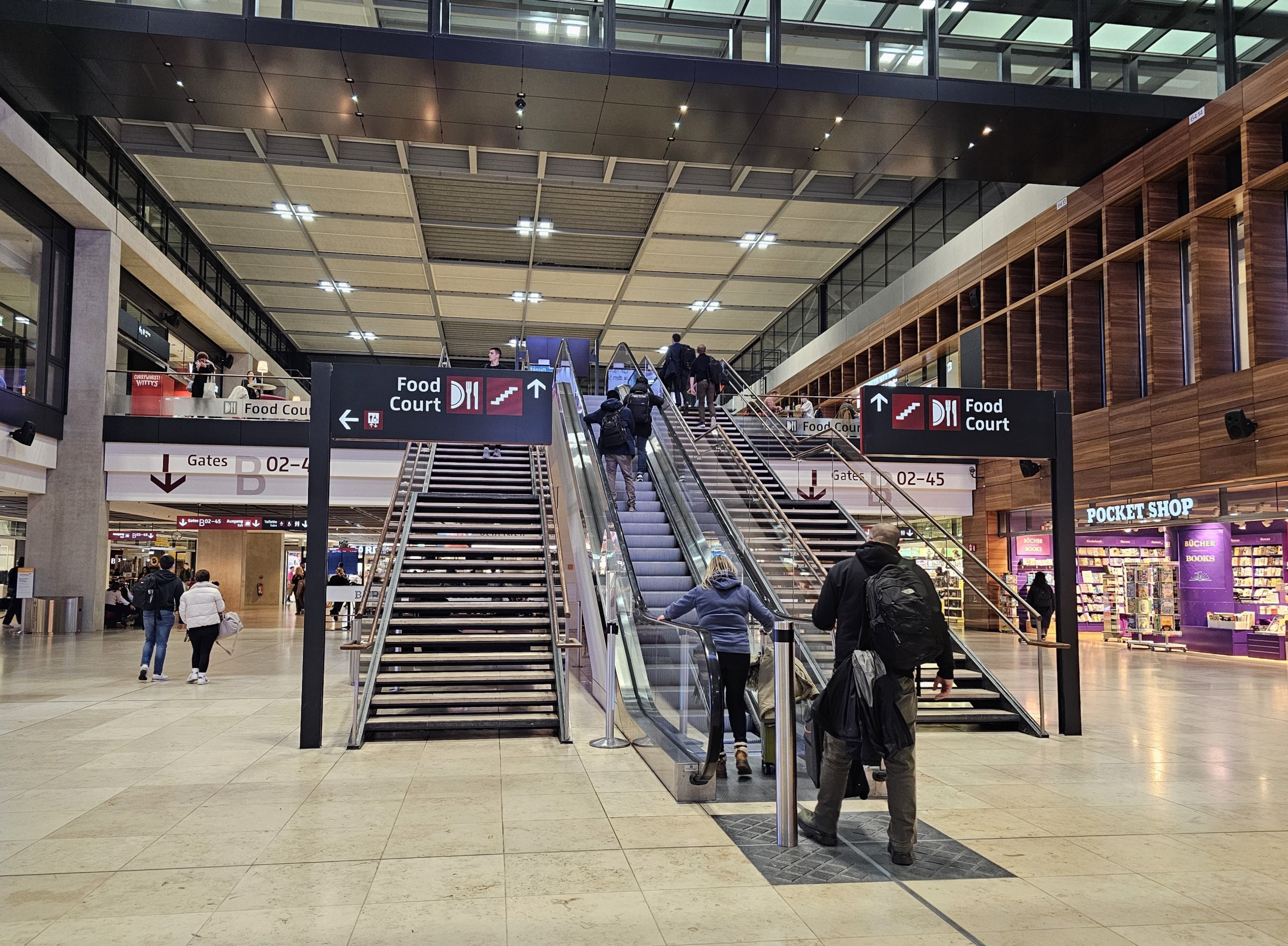 - Ick bin ein Berliner: bar og pub - Terminal 1, etter sikkerhetskontrollen (Market Place), åpent fra kl. 15.30 til siste avgang