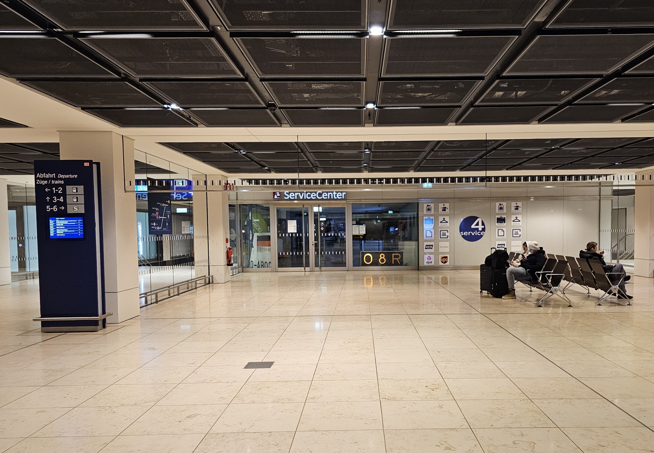 Du kan oppbevare bagasjen din på nivå U1 i det offentlige området i nærheten av jernbanestasjonen Terminals 1/2.