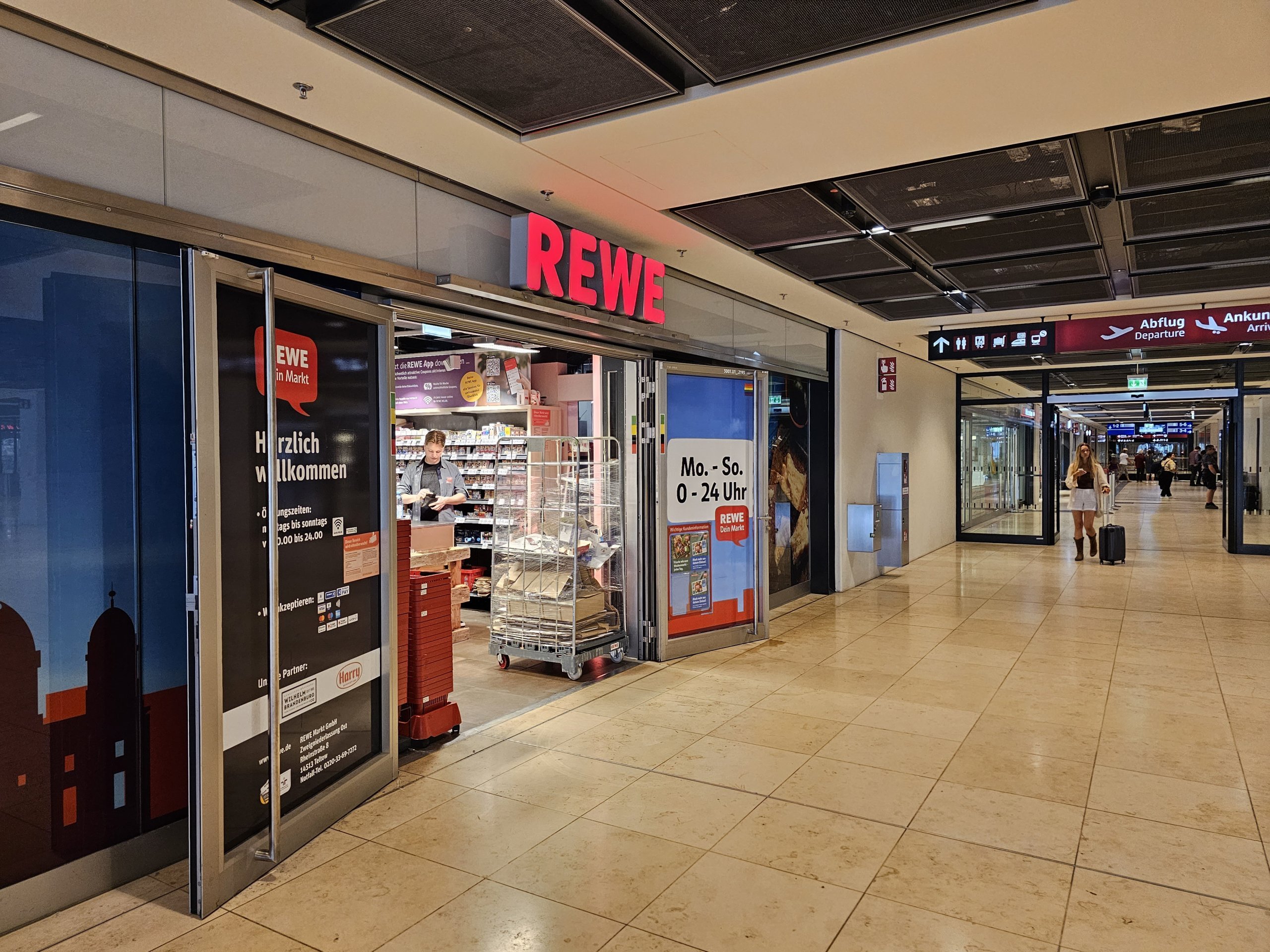 - REWE: klassisk supermarked, offentlig område ved inngangen til togstasjonen i kjelleren på terminal 1/2, åpent 24/7