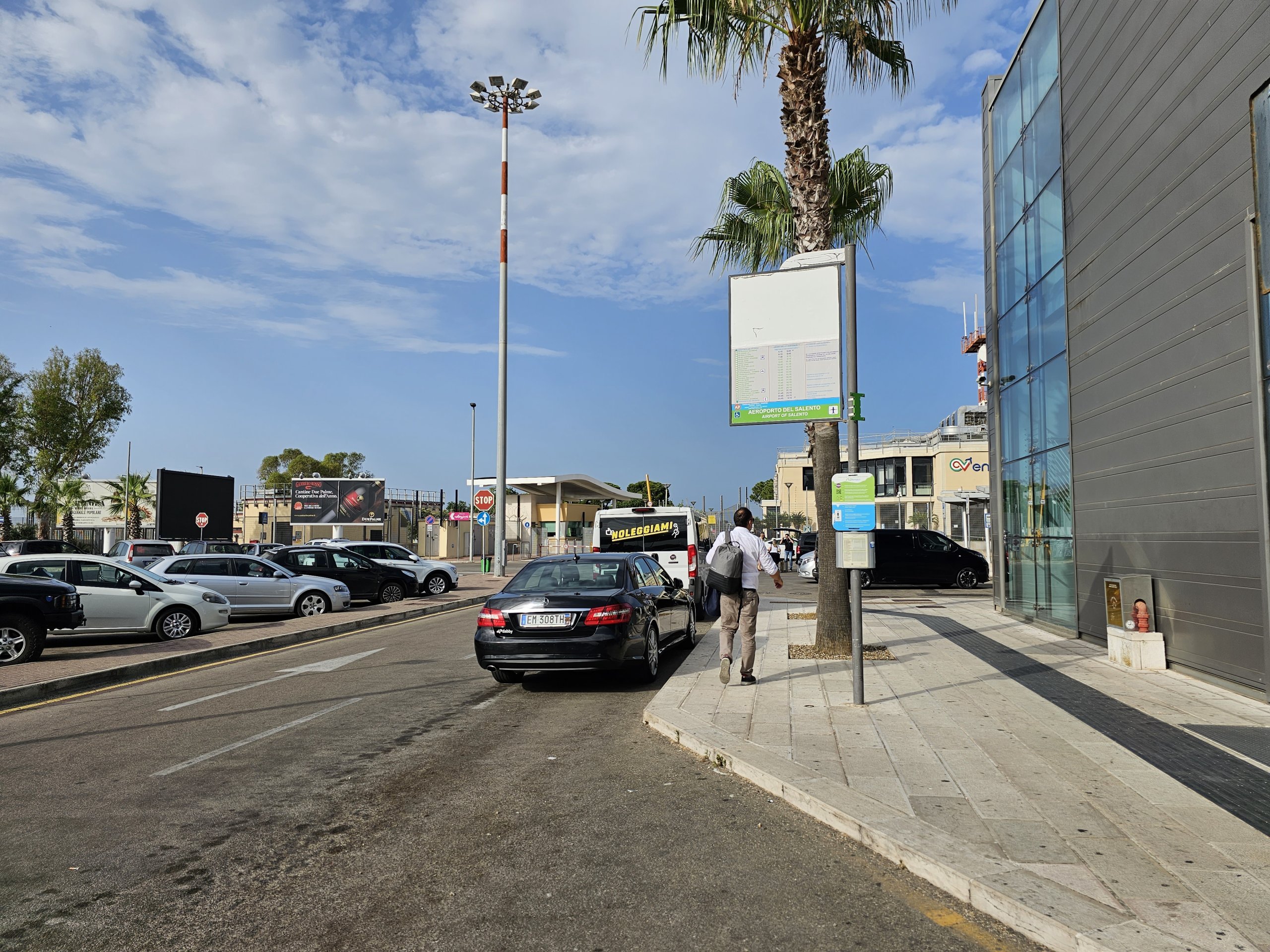 Brindisi betjenes av AP-bussen, som har avganger hvert 30. minutt fra terminalen. Du finner en liste over stoppesteder og rutetider på STP Brindisis nettside stpbrindisi.it.