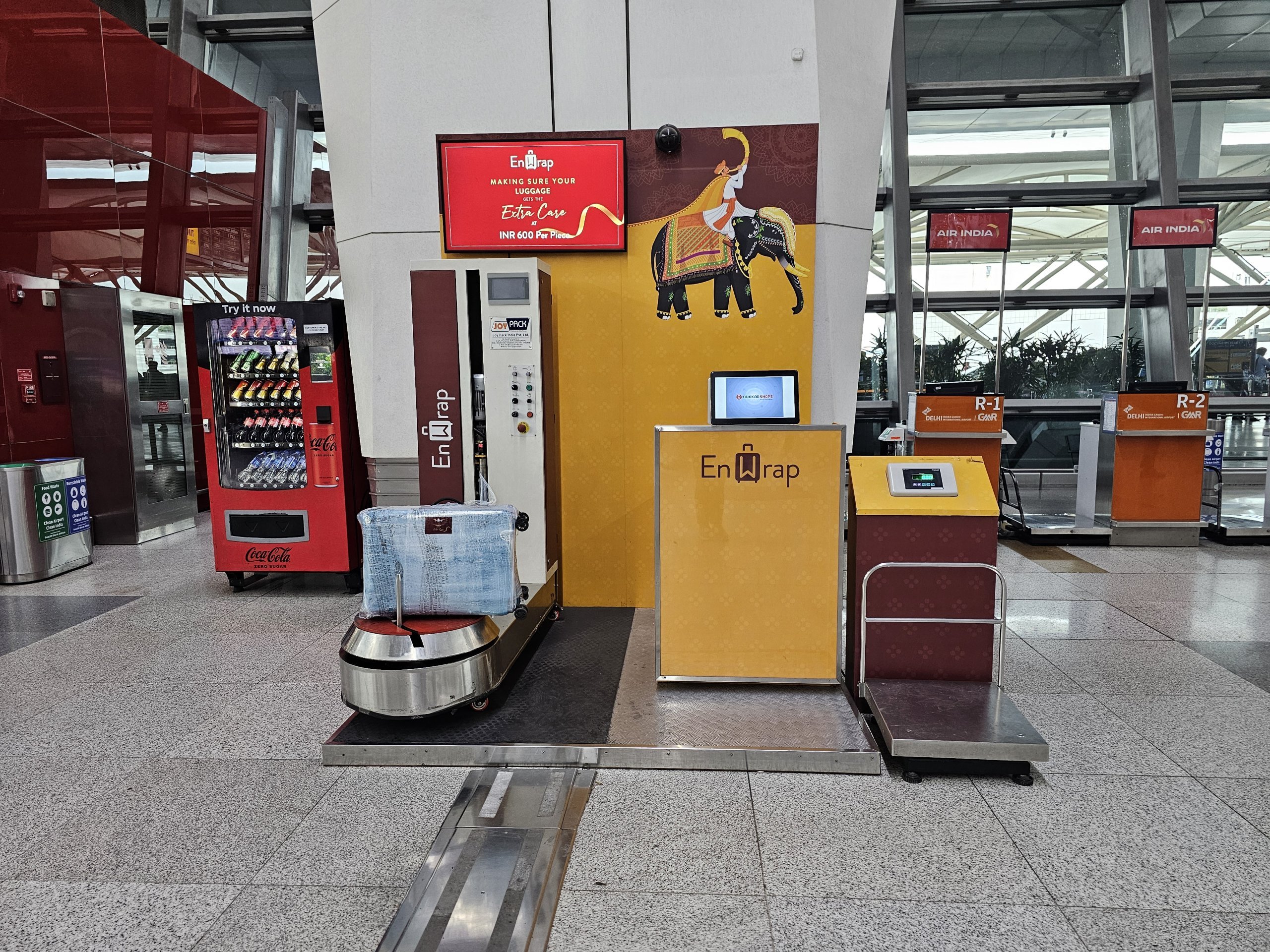 Alle terminalene har kiosker i innsjekkingshallene der du kan pakke inn bagasjen din i beskyttelsesfilm.