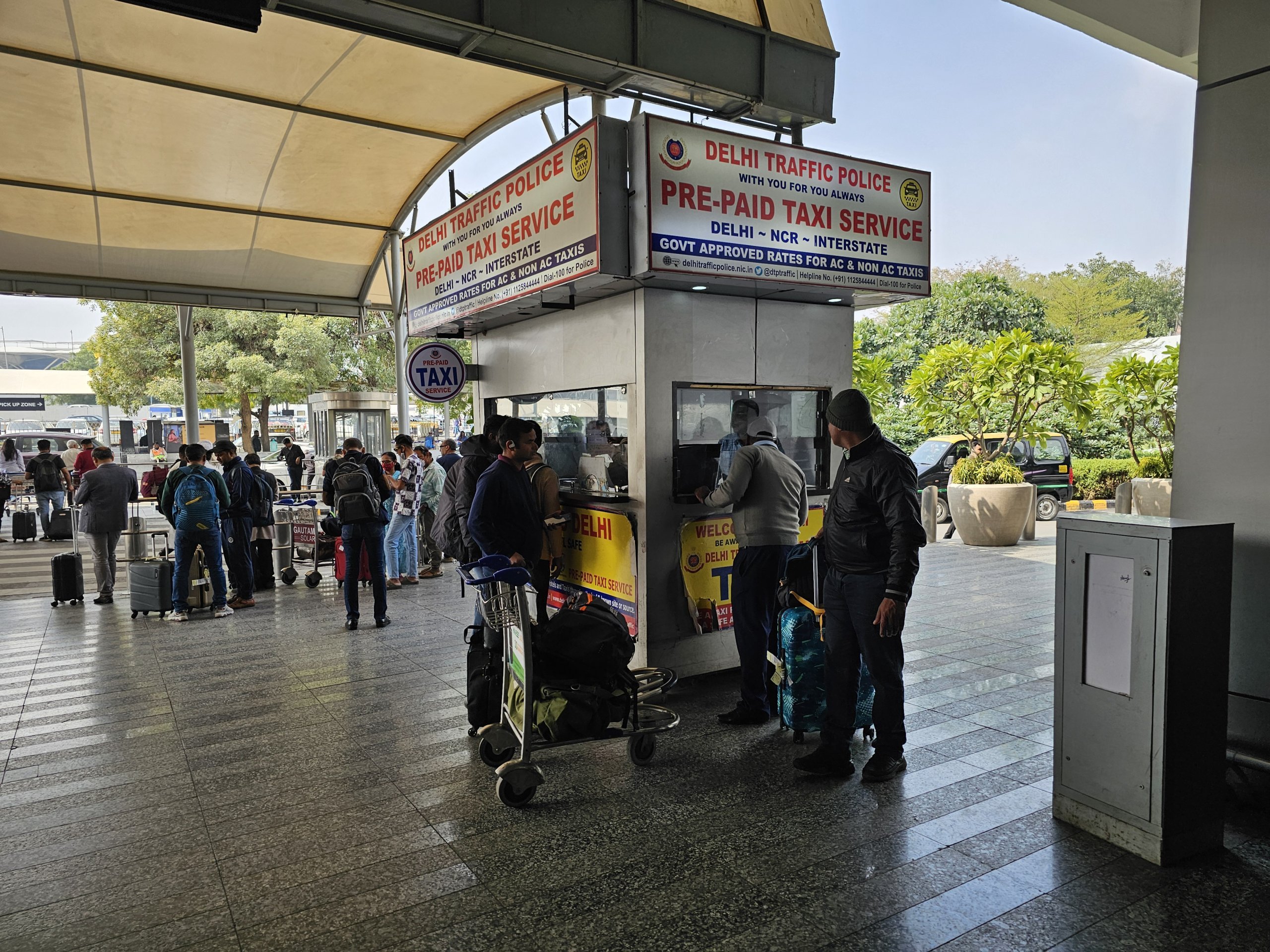 På vei fra flyplassen kan du forhåndsbetale for en taxi ved billettkontoret utenfor terminalen. De billigste prisene tilbys av de offisielle bytaxiene, som du kan abonnere på ved billettkontoret, som er skiltet Delhi Traffic Police.