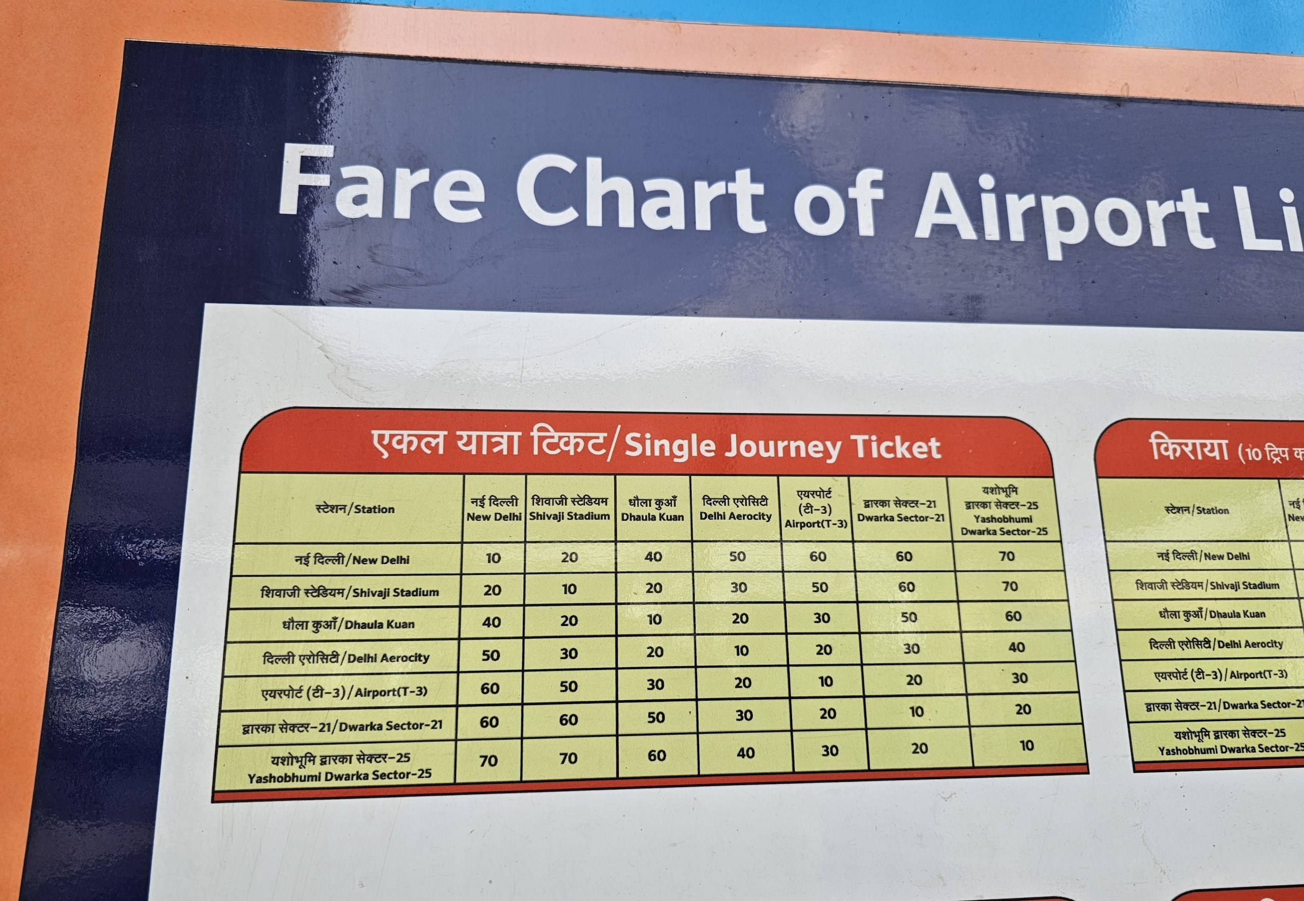 Turistkort med ubegrenset dagskort for 200 inr er gyldig for alle Delhi-metrolinjer unntatt "Airport Express".