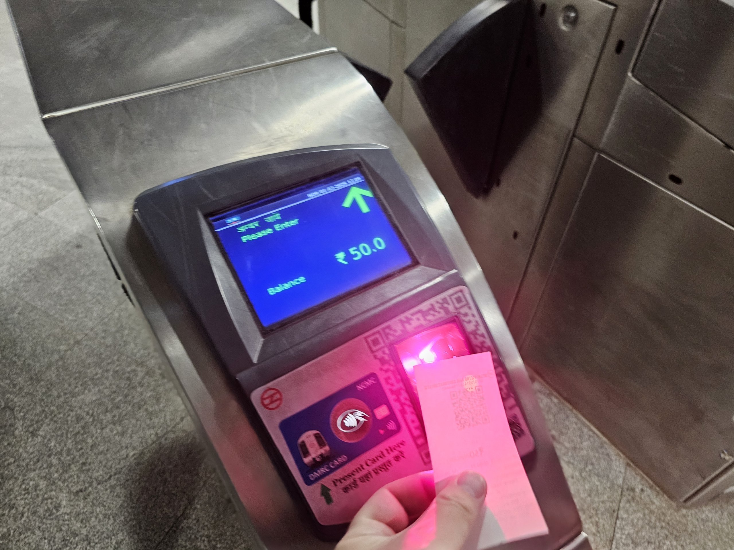 Billetter kan også betales med QR-kode via DMRC Momentum-mobilappen (tilgjengelig på : Google Play / App Store). Det kreves imidlertid registrering med personlige opplysninger, og det er bare mulig å registrere seg med et indisk telefonnummer.