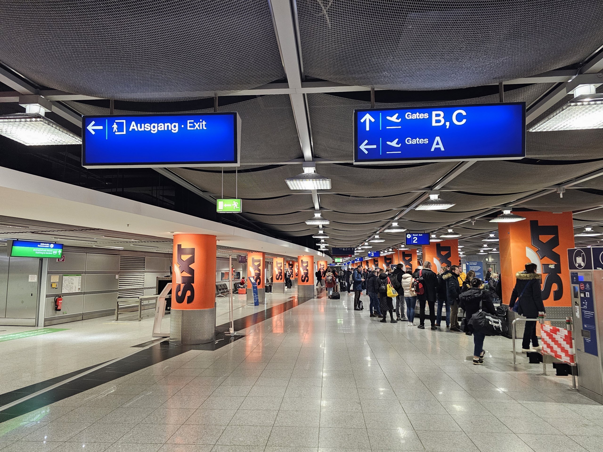 Hver seksjon har sin egen sikkerhetskontroll, men i transittområdet kan du bevege deg fritt mellom alle utgangene A, B og C, uavhengig av hvilken sikkerhetskontroll du går gjennom.
