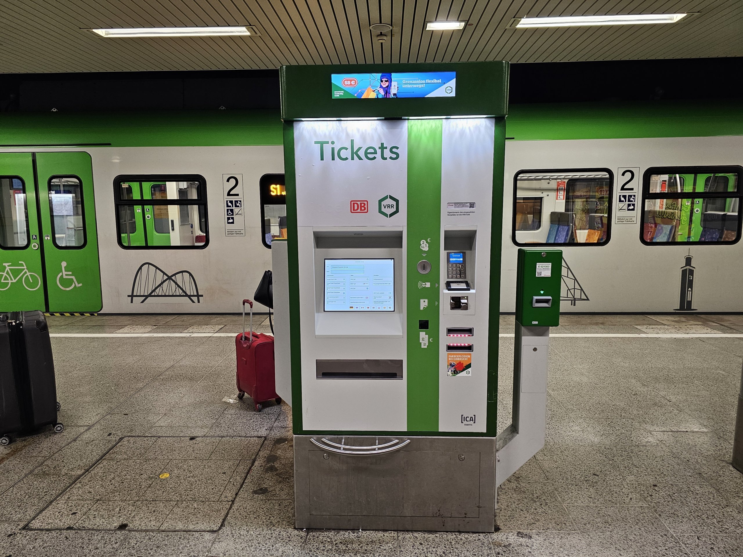 Billetter kan kjøpes i billettautomater på alle stasjoner eller via Rheinbahns mobilapp.
