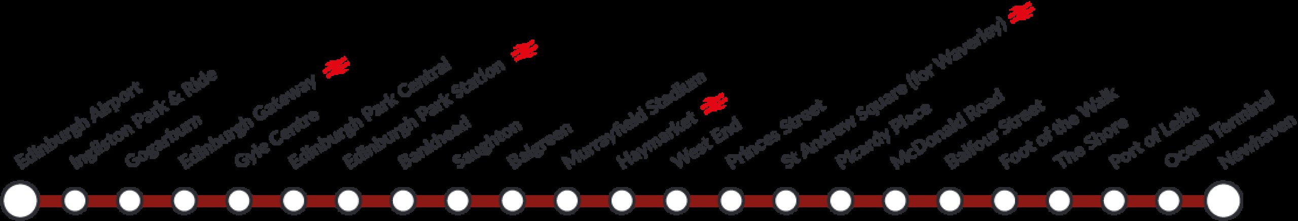 For å finne forbindelser, rutetider eller offisielle kart, besøk: edinburghtrams.com