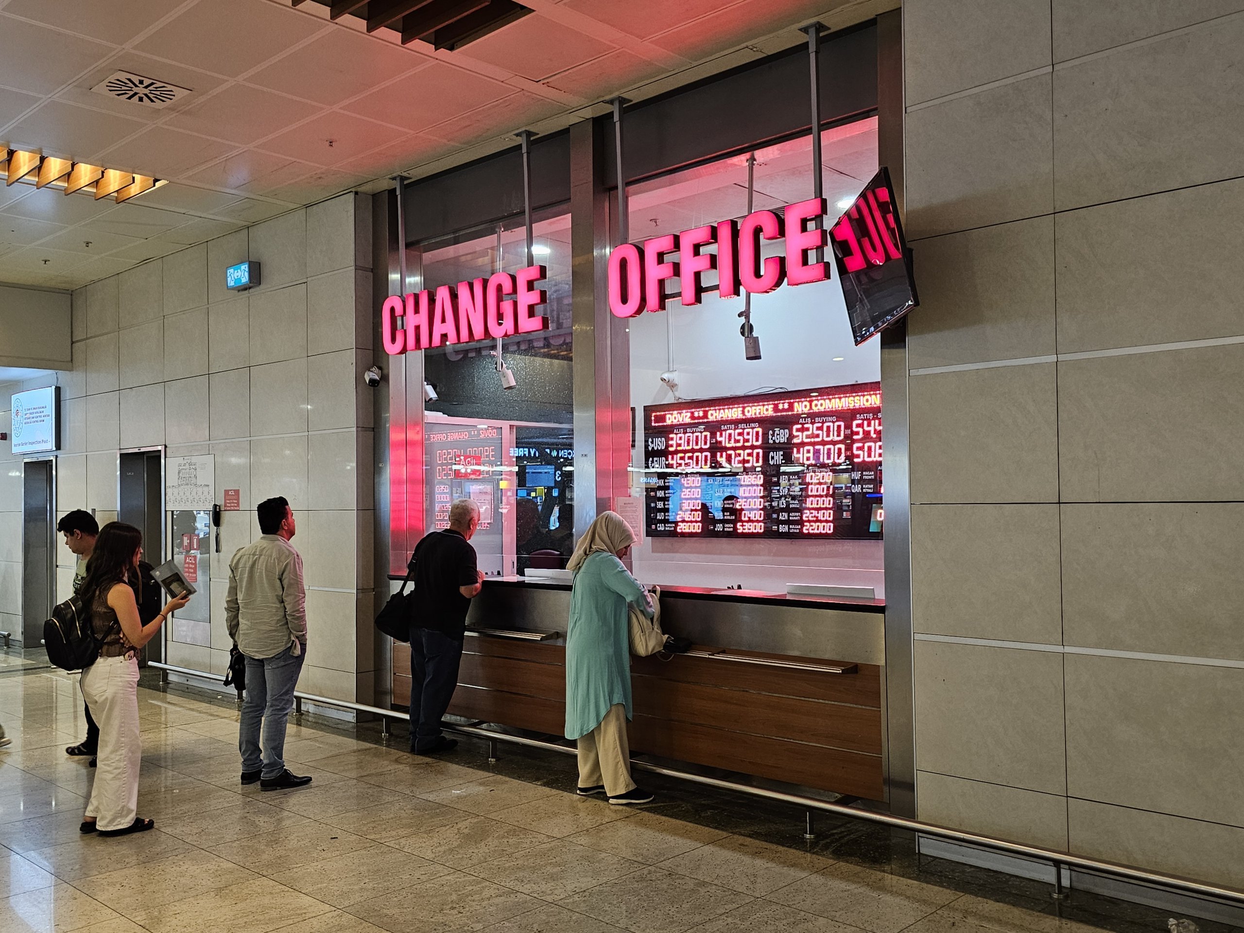 Det finnes et stort antall vekslingskontorer på Sabiha Gökcen lufthavn. Vi fant de beste vekslingskursene på vekslingskontoret rett ved bagasjebåndene, fortsatt i transittområdet.