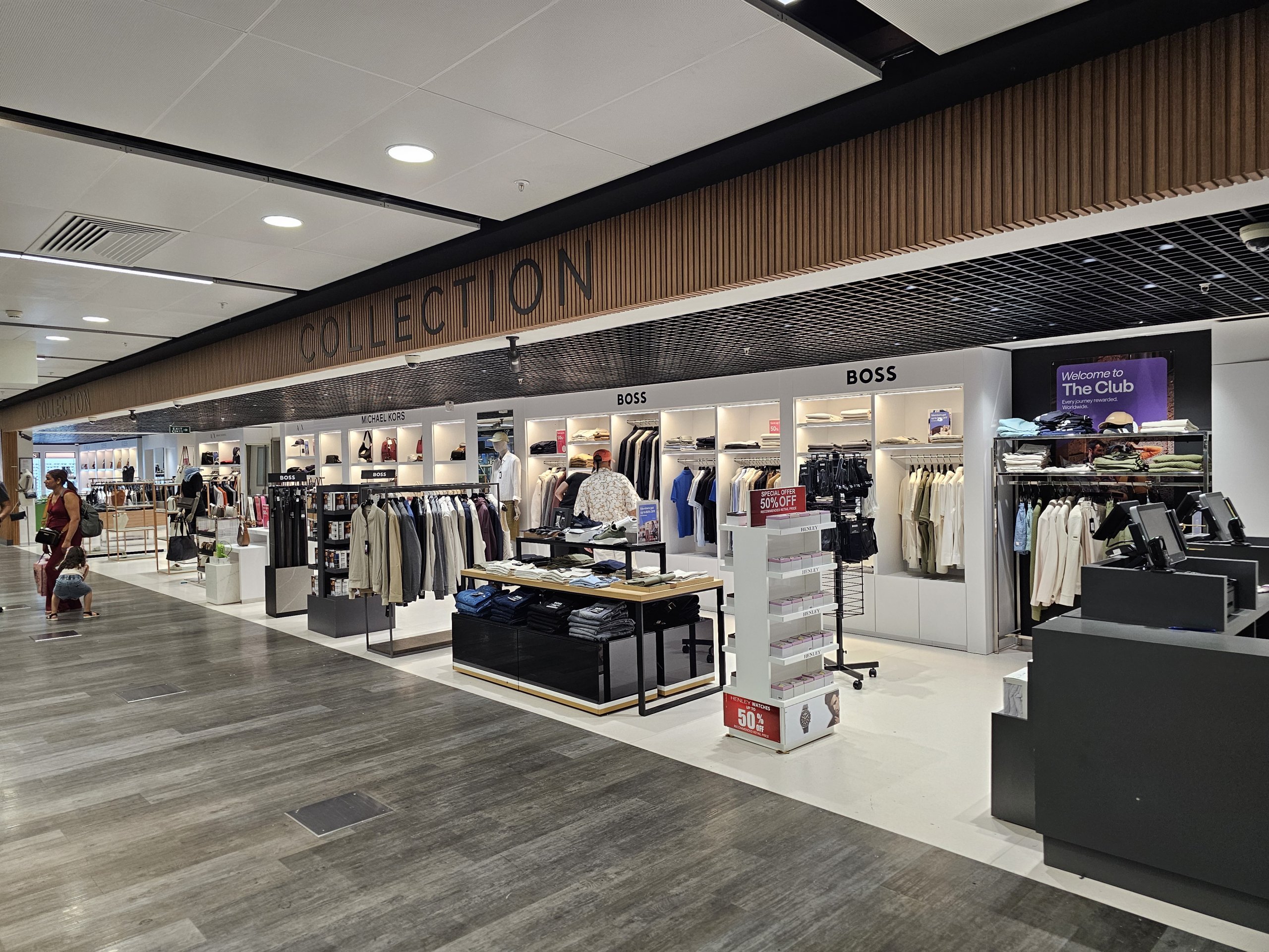De fleste butikkene ligger i det sentrale området rett etter sikkerhetskontrollen.