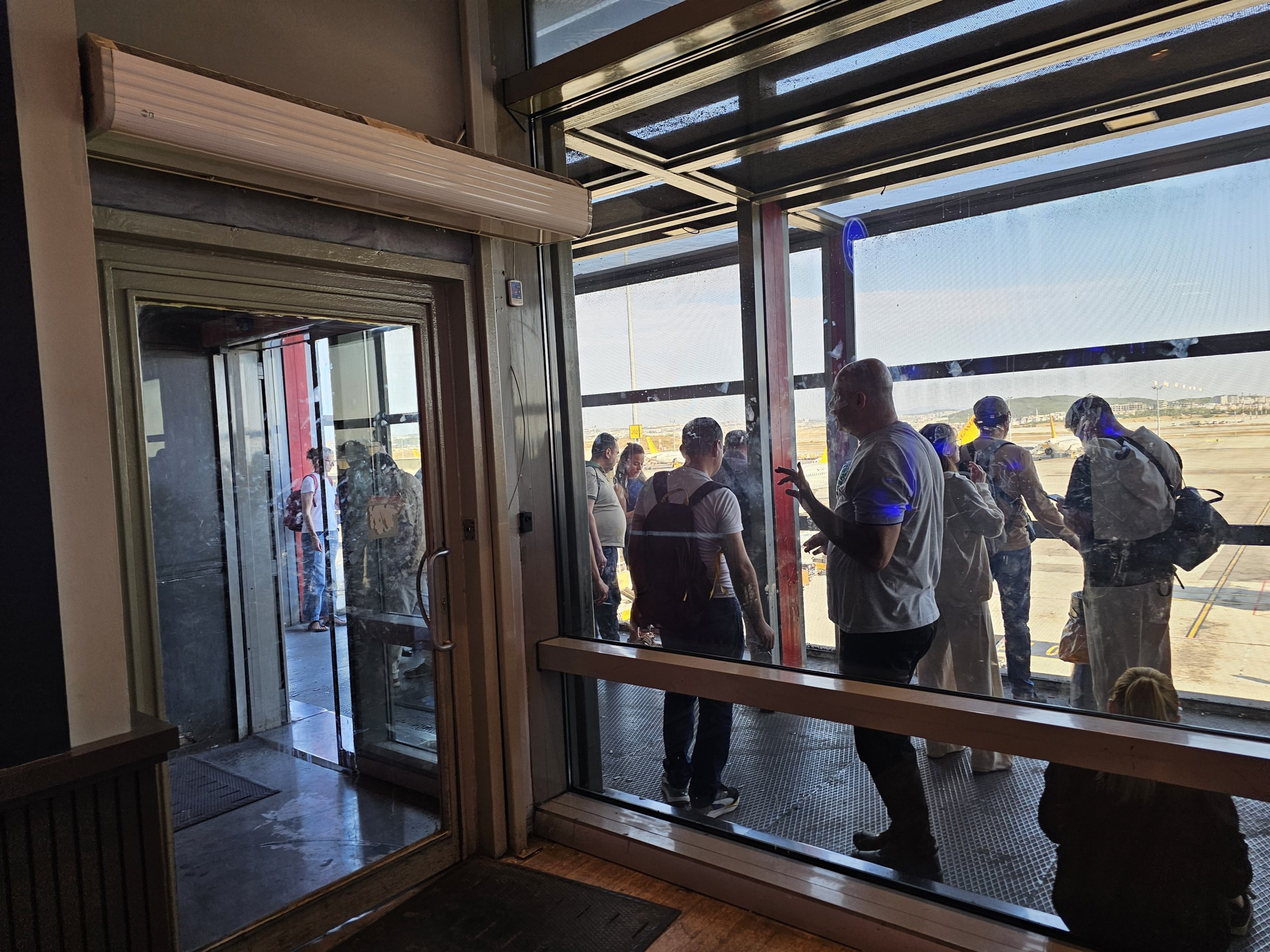 Videre er det bare små kafeer og kiosker ved avgangsportene.