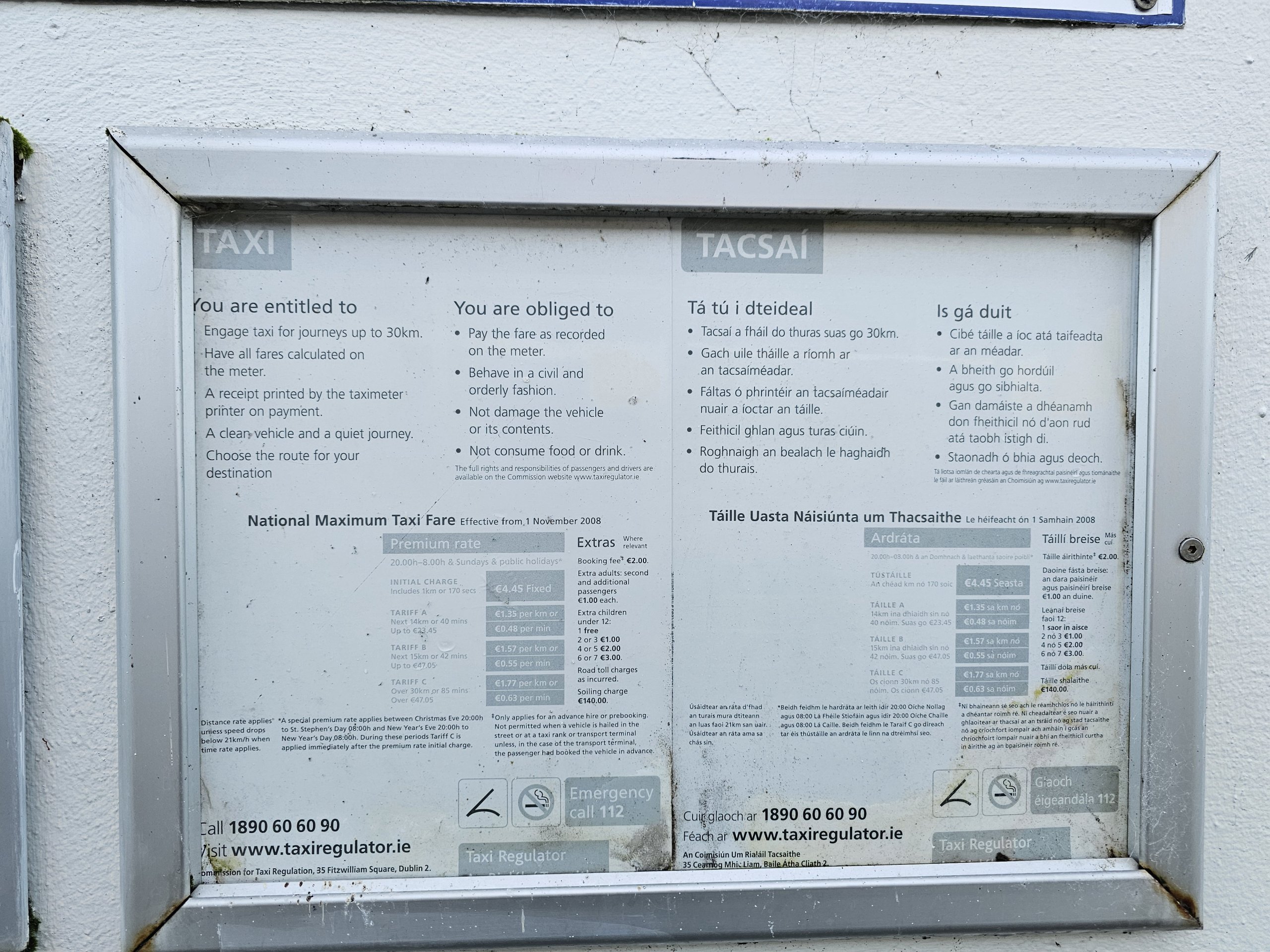Selv om offisielle taxier må kjøre etter taksameter, kan du støte på useriøse drosjesjåfører som tilbyr en fast pris på 40 euro for en tur til Killarney, pluss muligheten til å betale kun kontant.