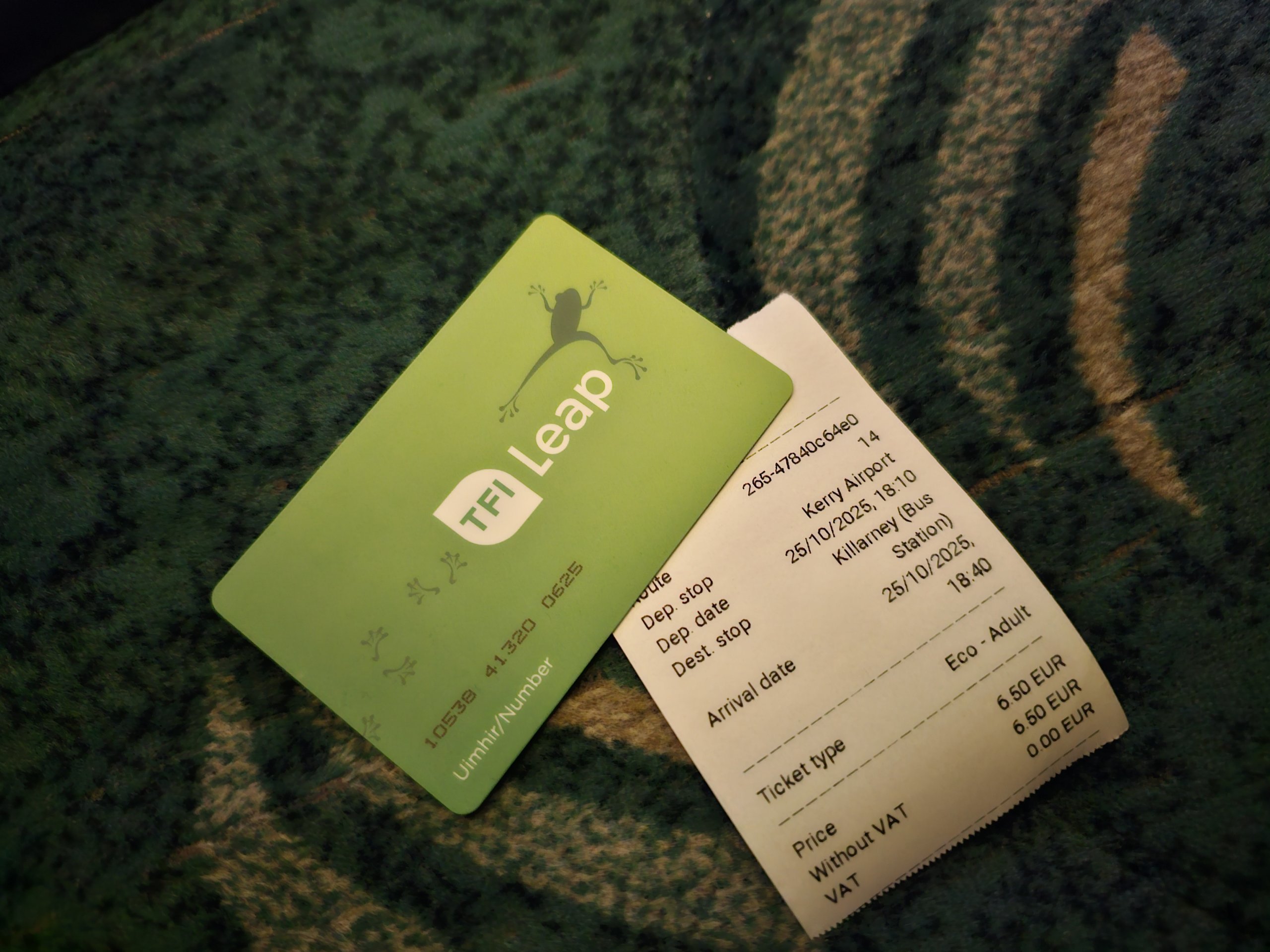 Billettprisen kan alltid betales kontant eller med kort til sjåføren. Du kan også betale med et Leap Card, men du kan ikke kjøpe det på Kerry lufthavn.