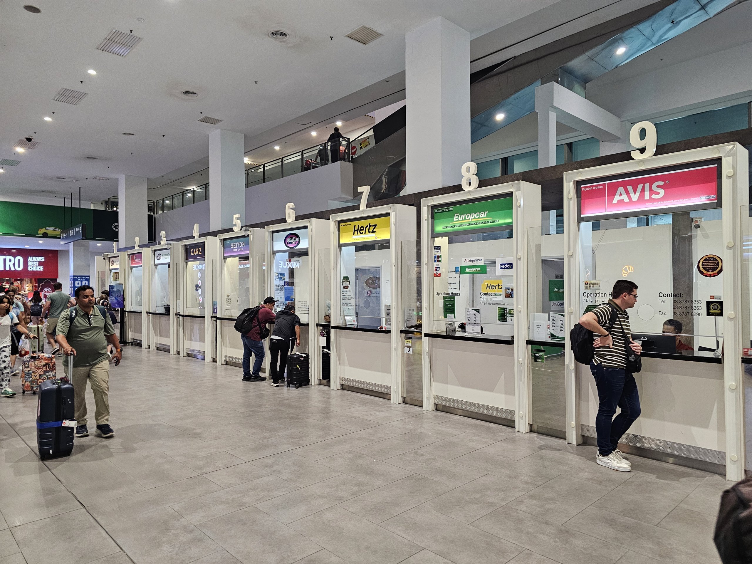 Mange internasjonale og lokale bilutleiefirmaer har filialer i begge terminalene.